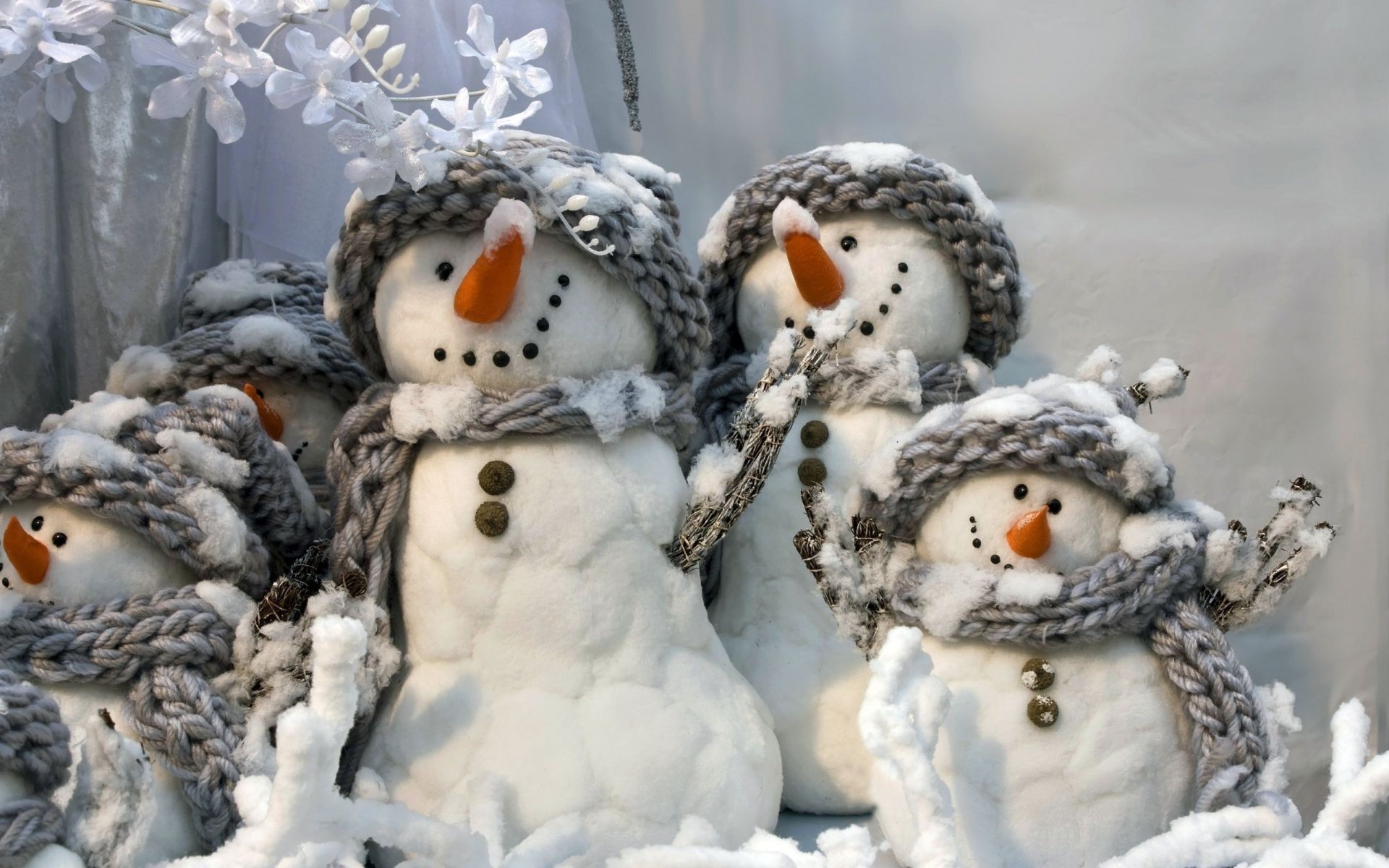 A family of snowmobiles for a photo shoot