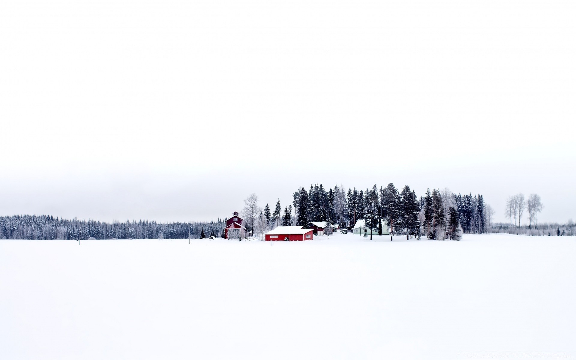 A red building in a snow-covered field