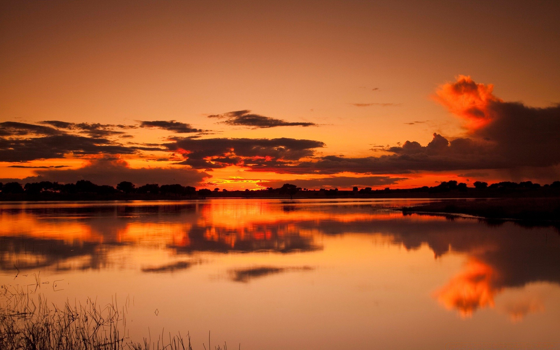 Clouds in the sky. The reflection of the sky in the lake. Beautiful landscape