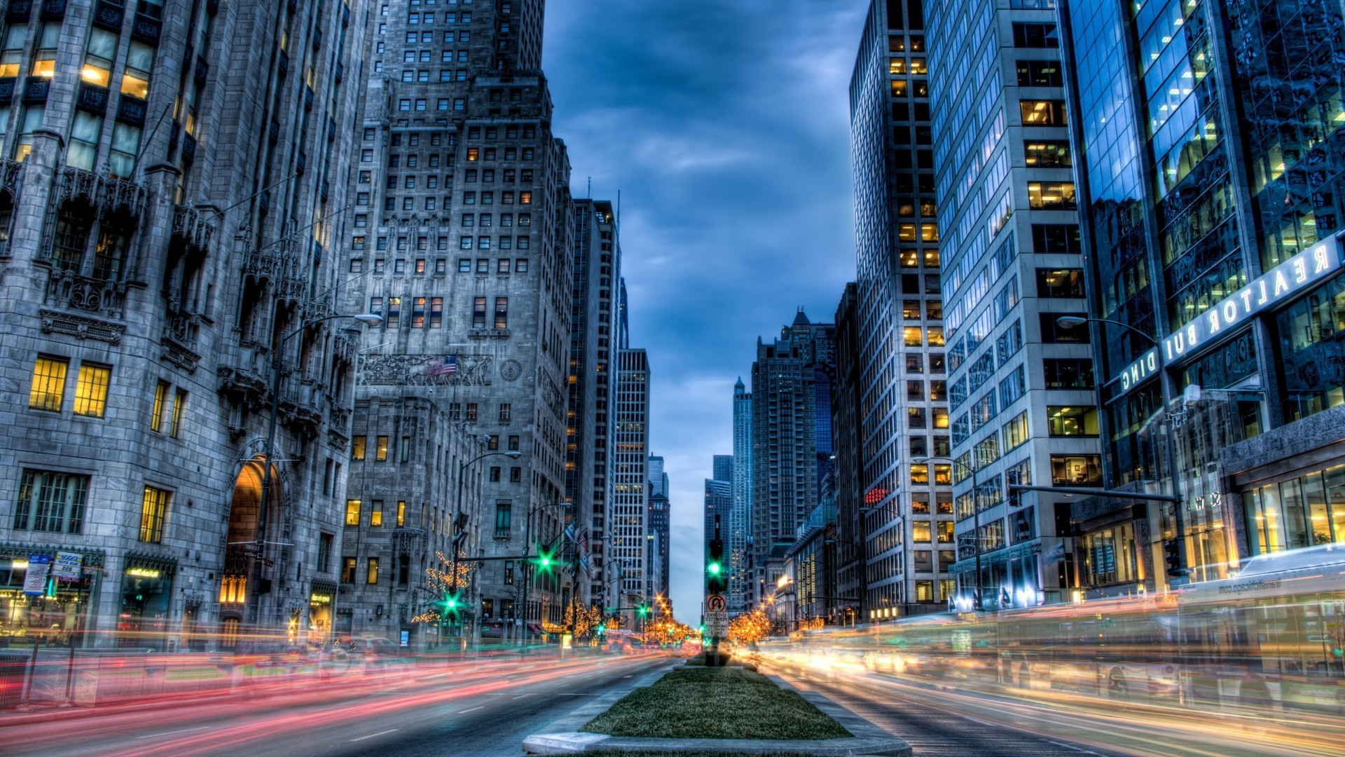 Night avenue in the light of skyscrapers