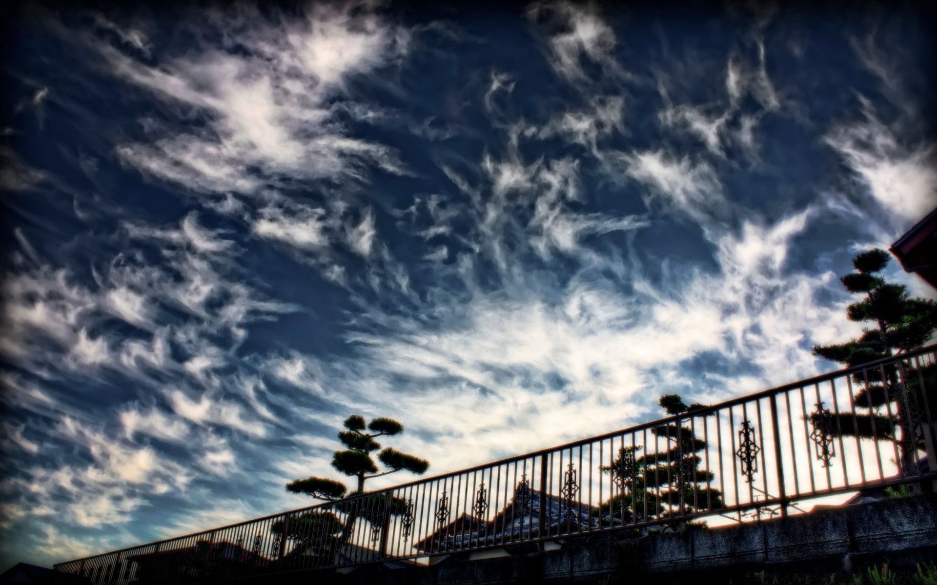 Unusual sky with cirrus clouds