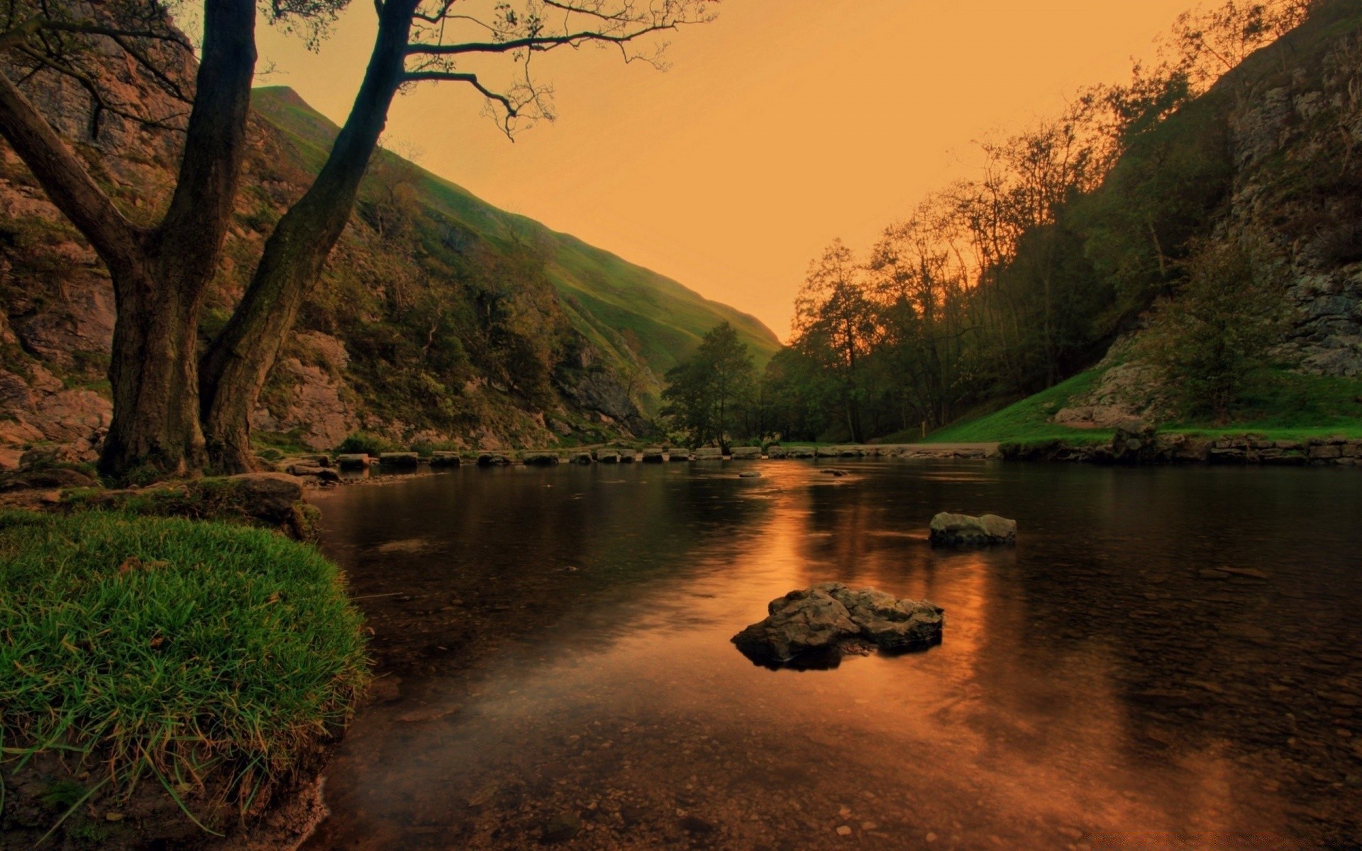Landscape of the red river at sunset