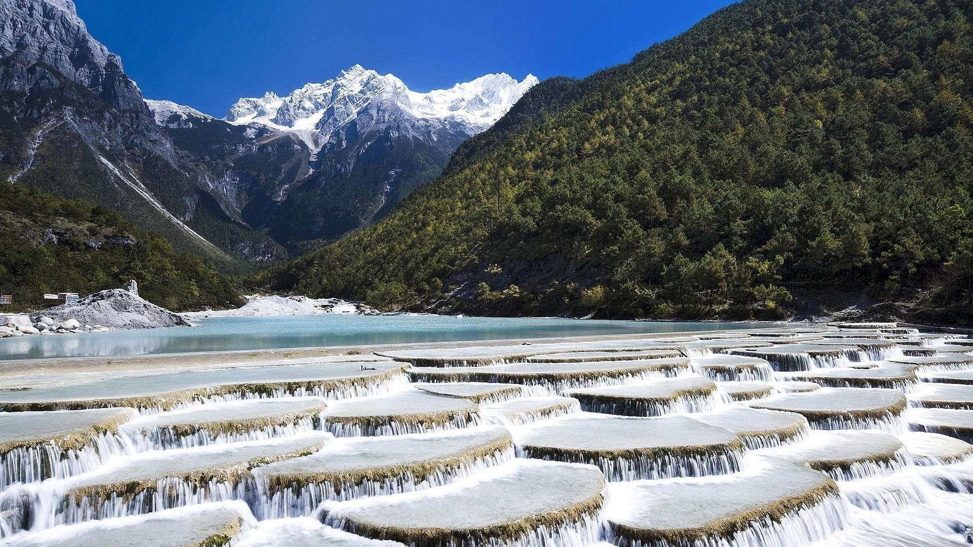 A beautiful lake among snow-capped mountains