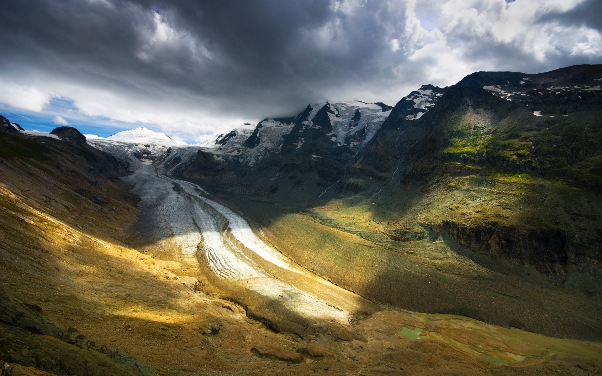 Snow and mountains. Rivers and ponds