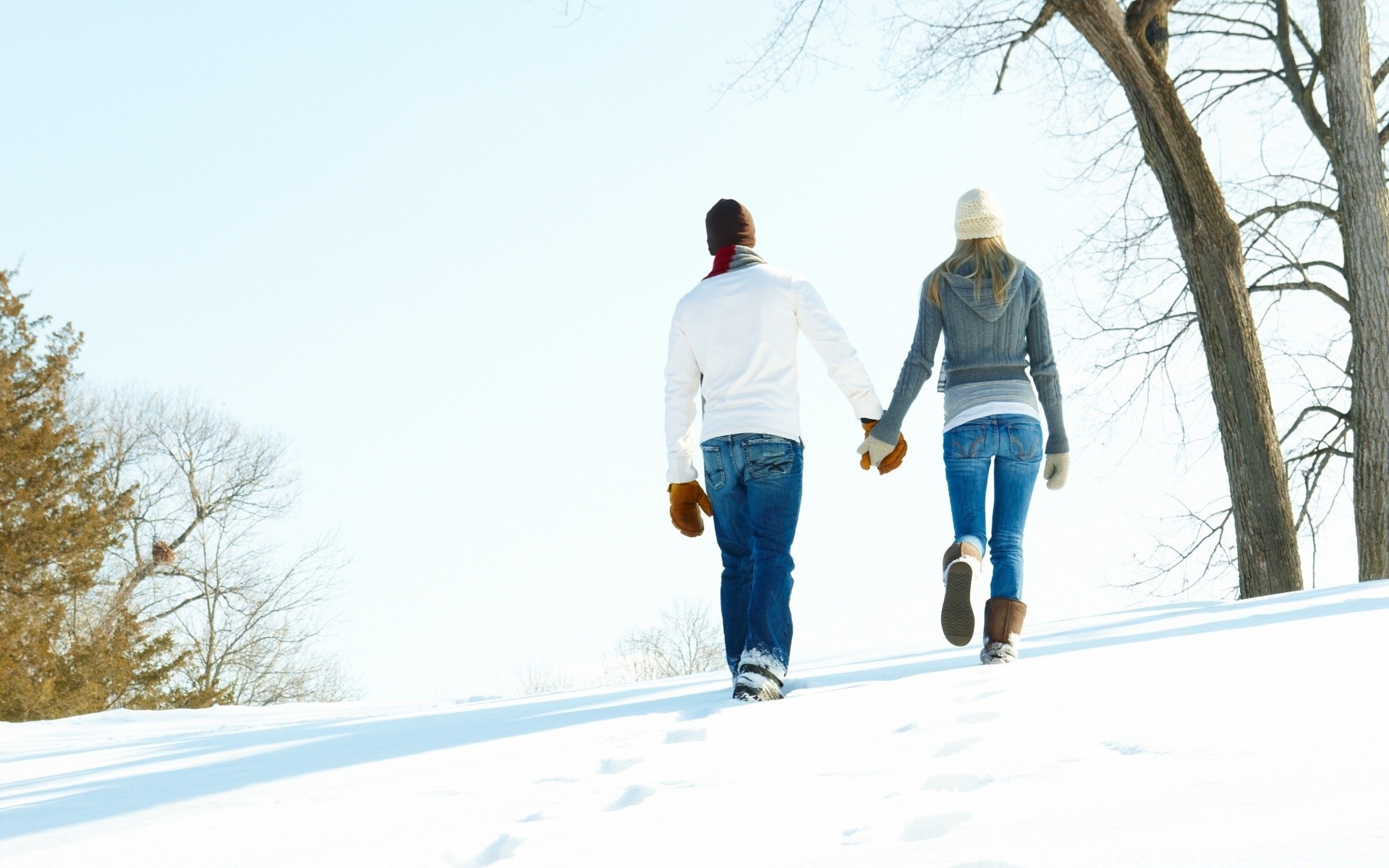 Stylized image of a Christmas tree in the snow in the light of the moon