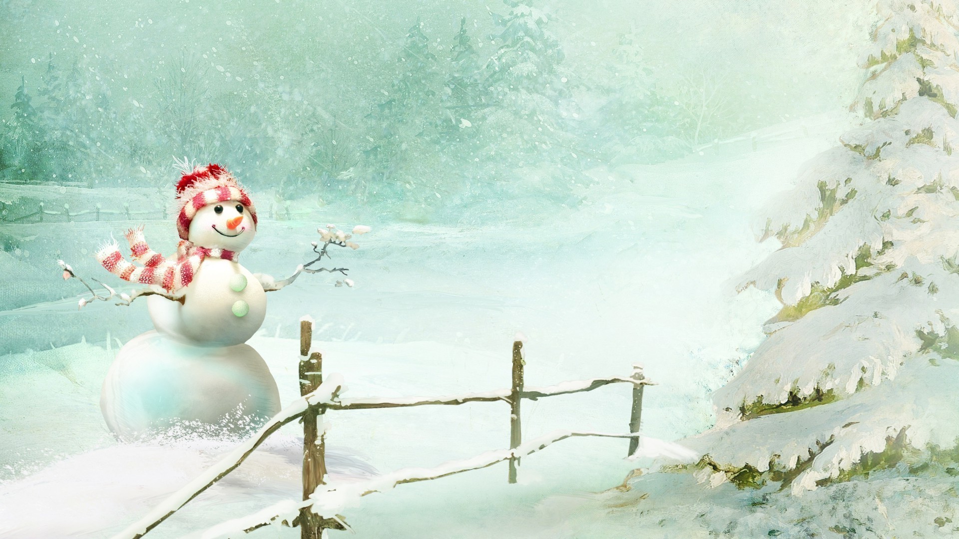 A Christmas tree painted on white snow