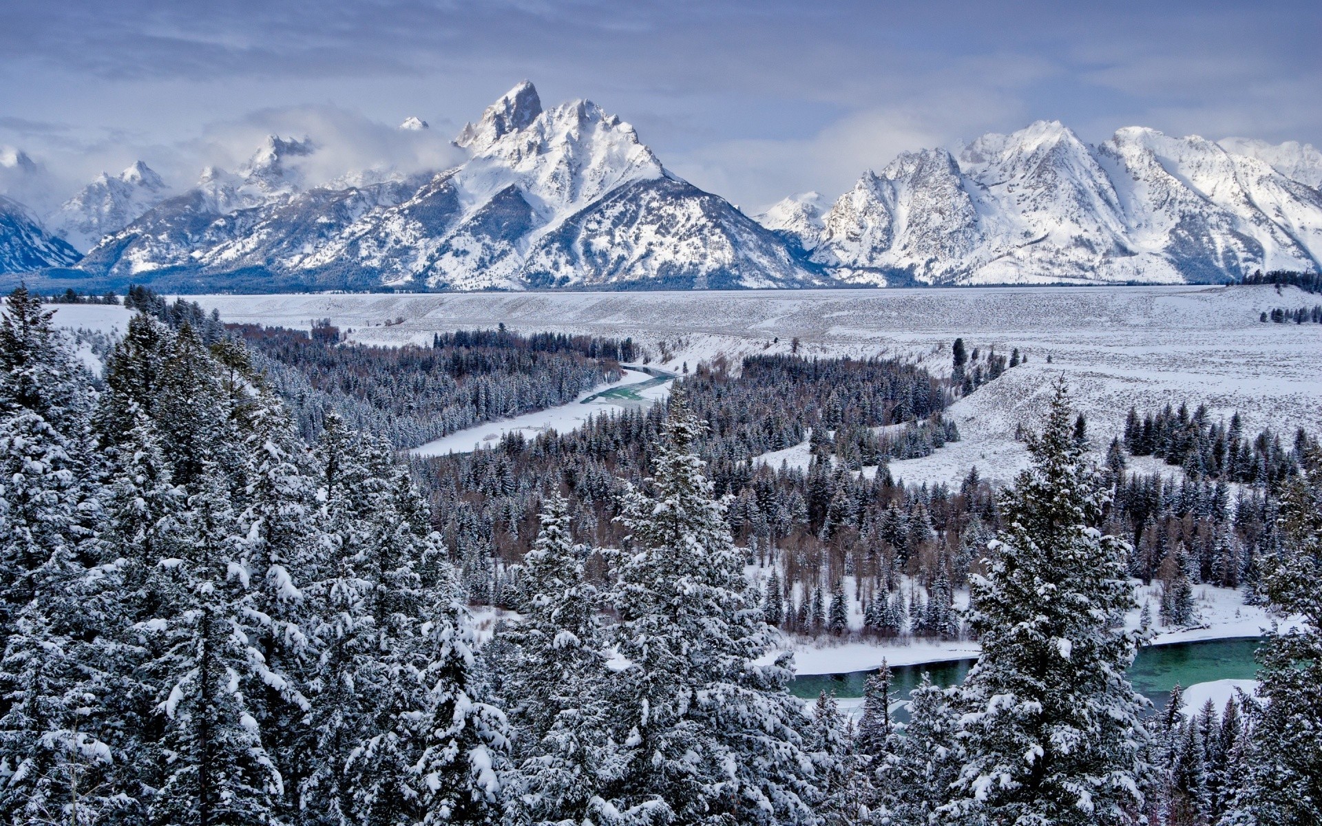 Snowy mountain peaks in winter