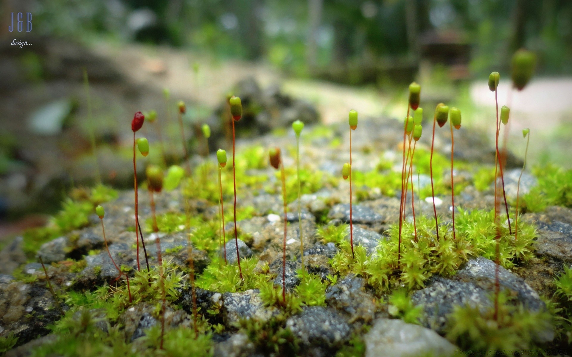 Macro photography of soil and plant sprouts in nature