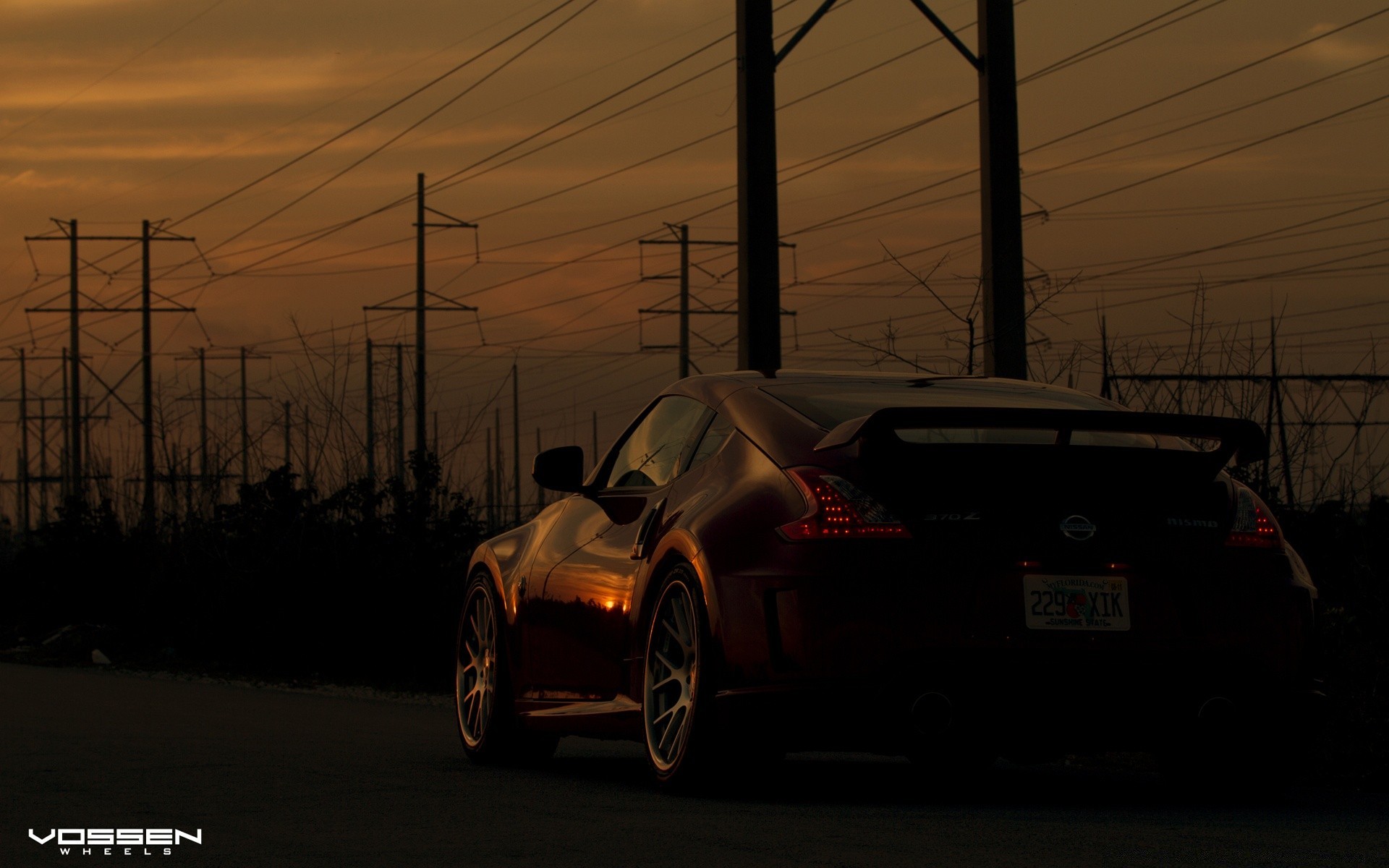 A powerful car in the thick twilight
