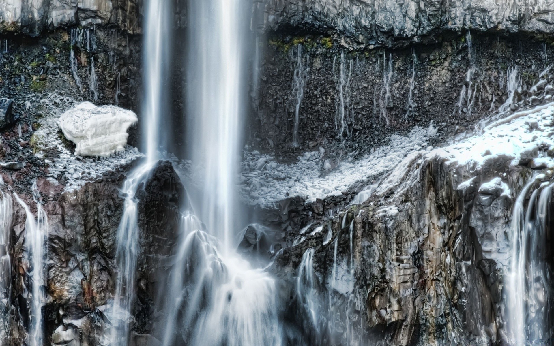 Waterfall in the cold rocky mountains