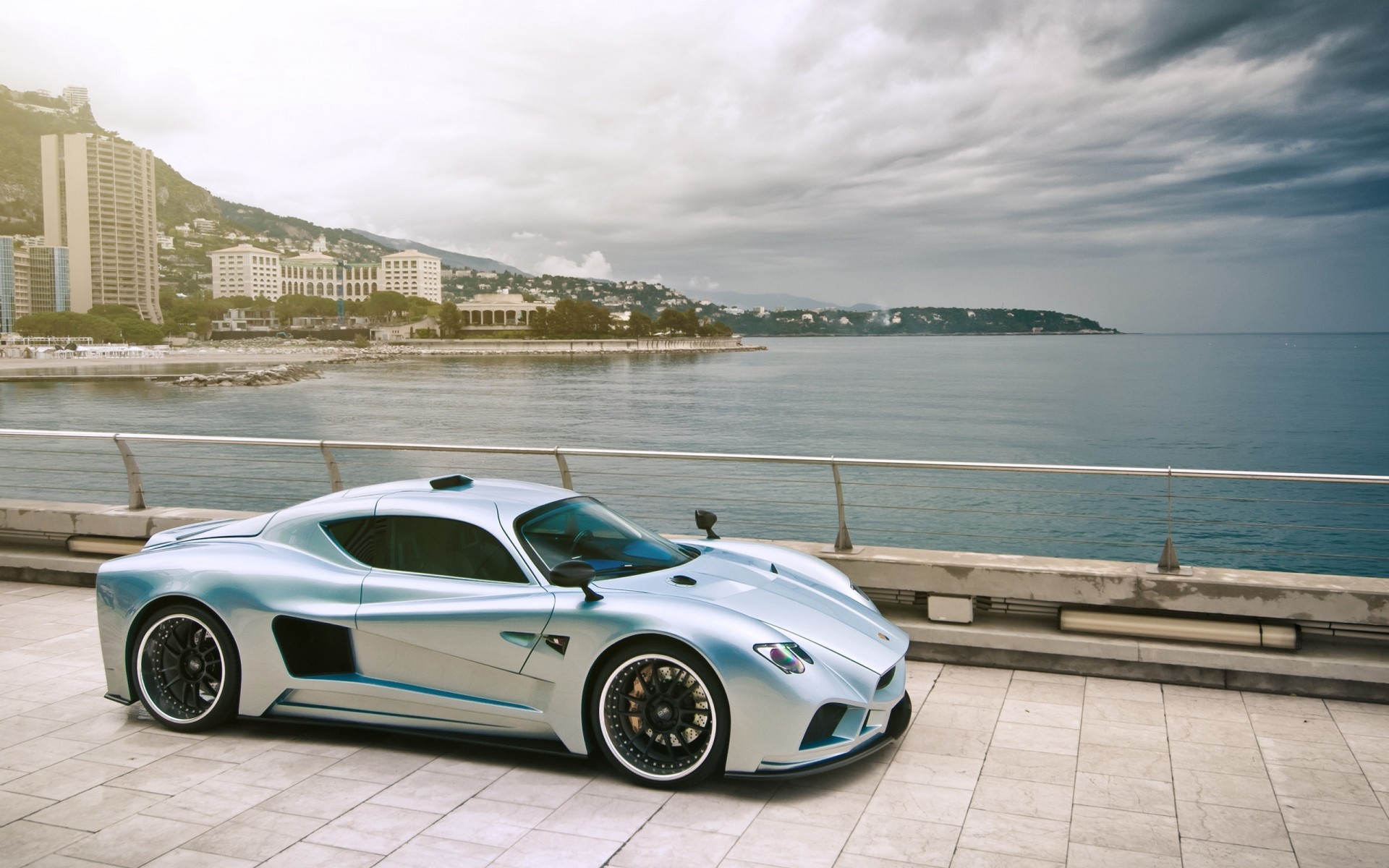 Racing sports car on the pier