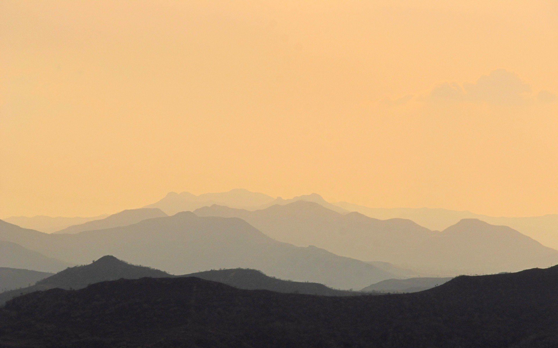 Photo of mountains in the fog on the background of sunset