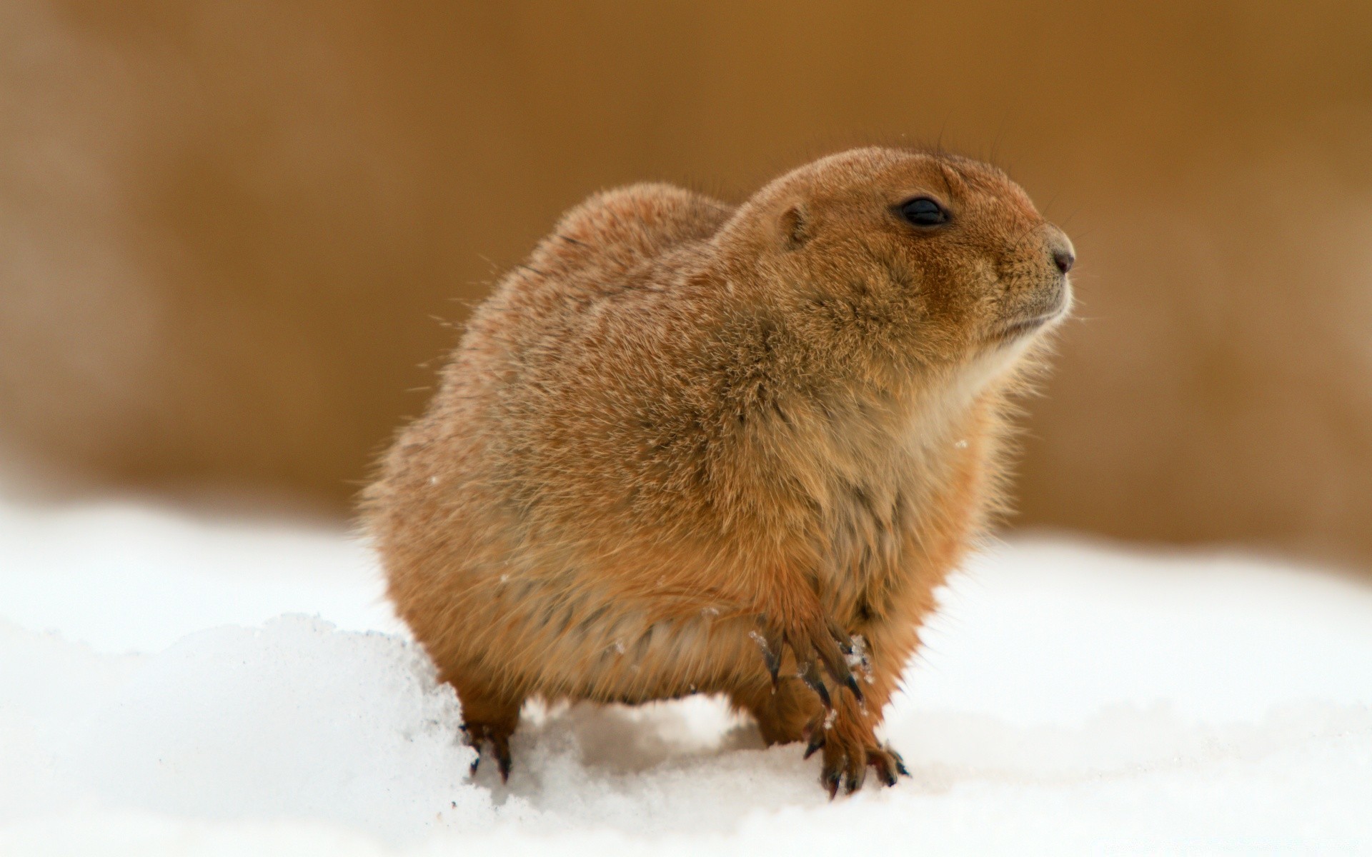 A furry animal is standing in the snow