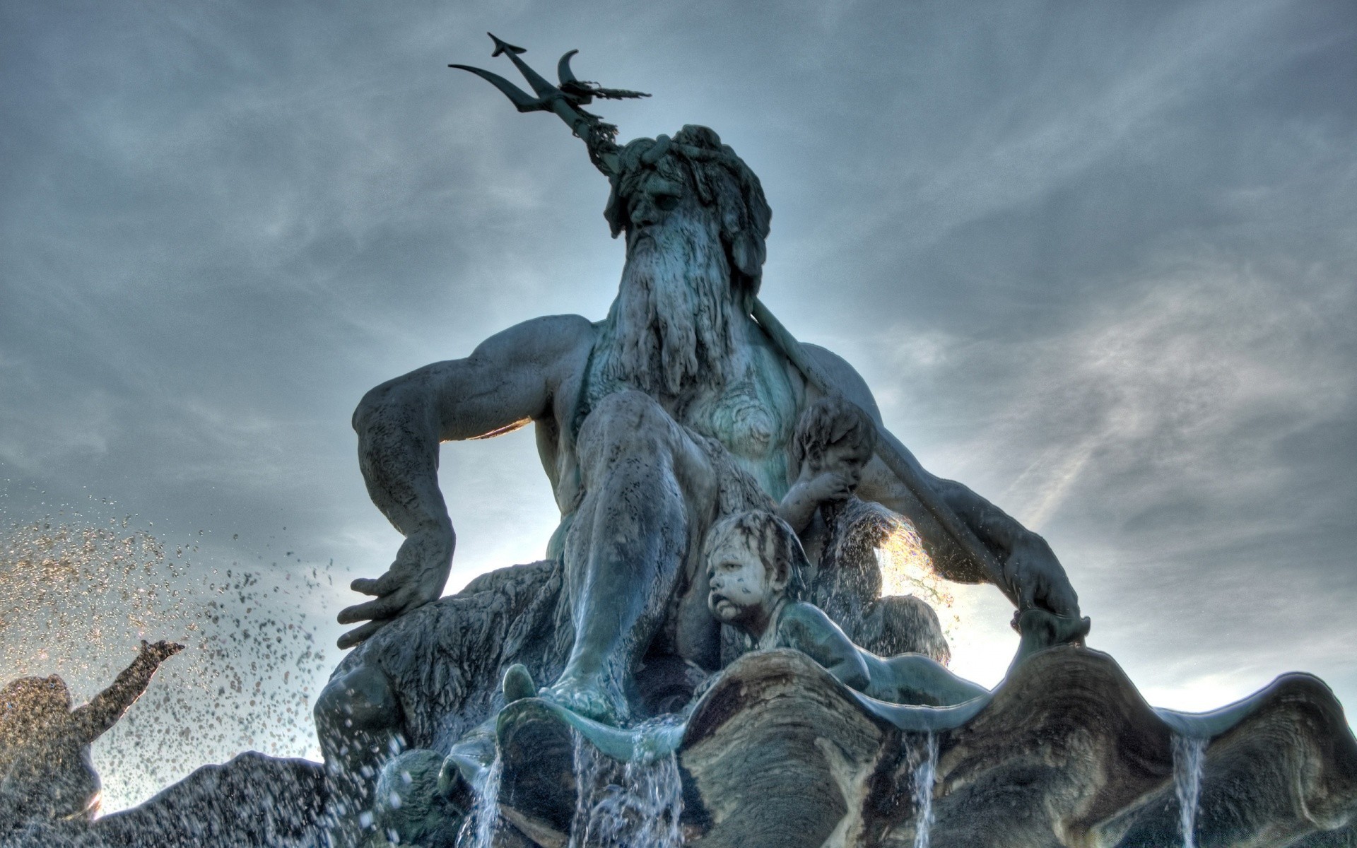 Sculpture of a man on the background of a high-rise buildingSculpture of a man on the background of a high-rise building
