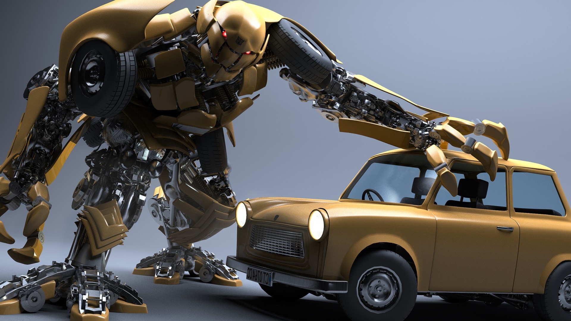 The robot studies the vehicle's transport system