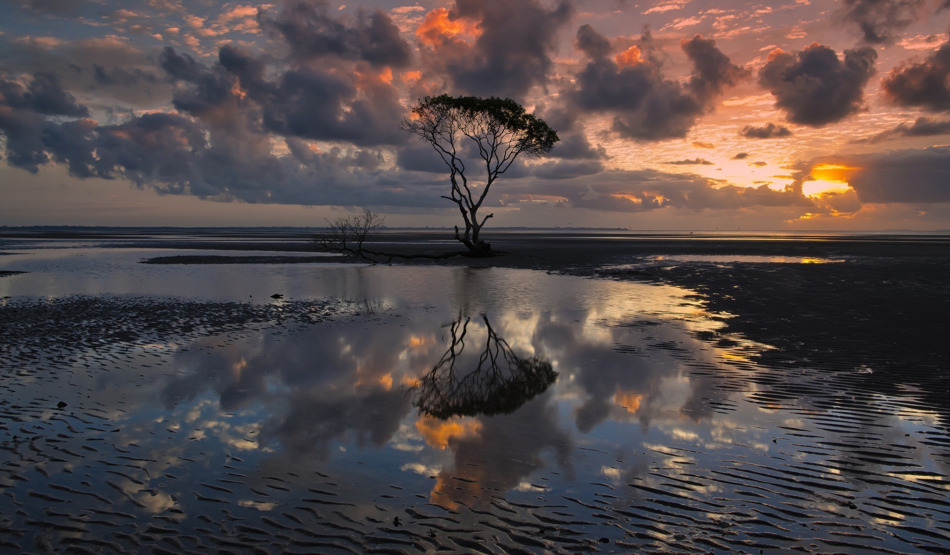 Strange sunset over the lake
