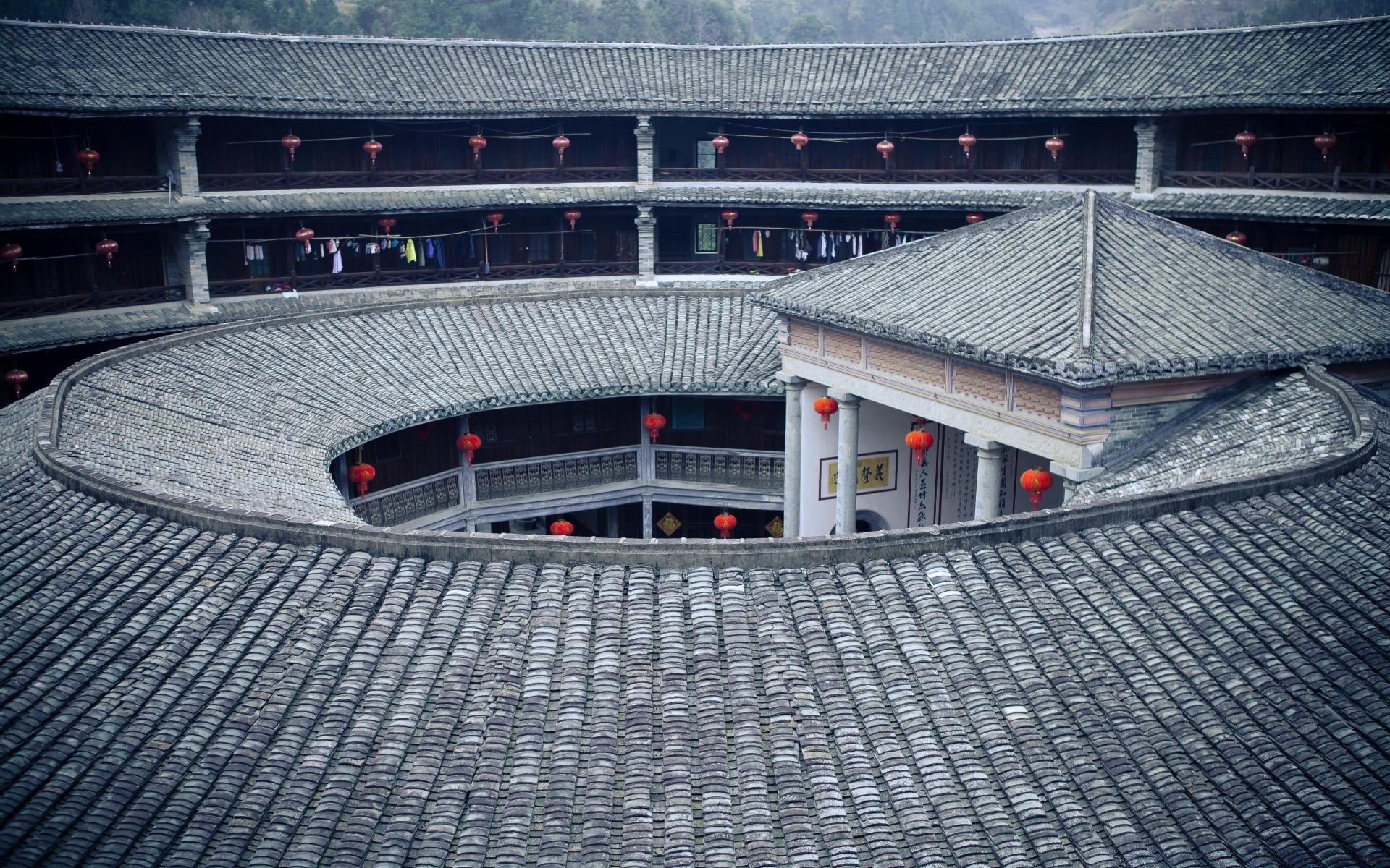 Stone staircases in the amazing architecture of the house under the ceiling of which there is a crucifix