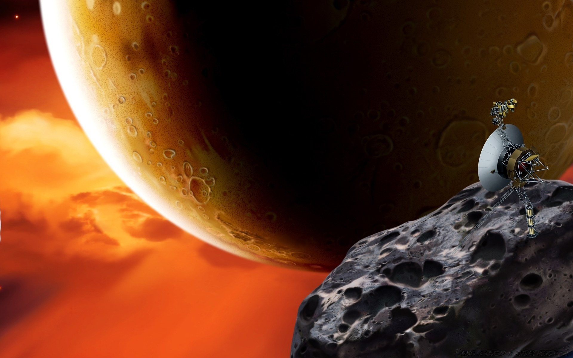 A planet and an asteroid. the spacecraft observes objectsA planet and an asteroid. The spacecraft observes objects