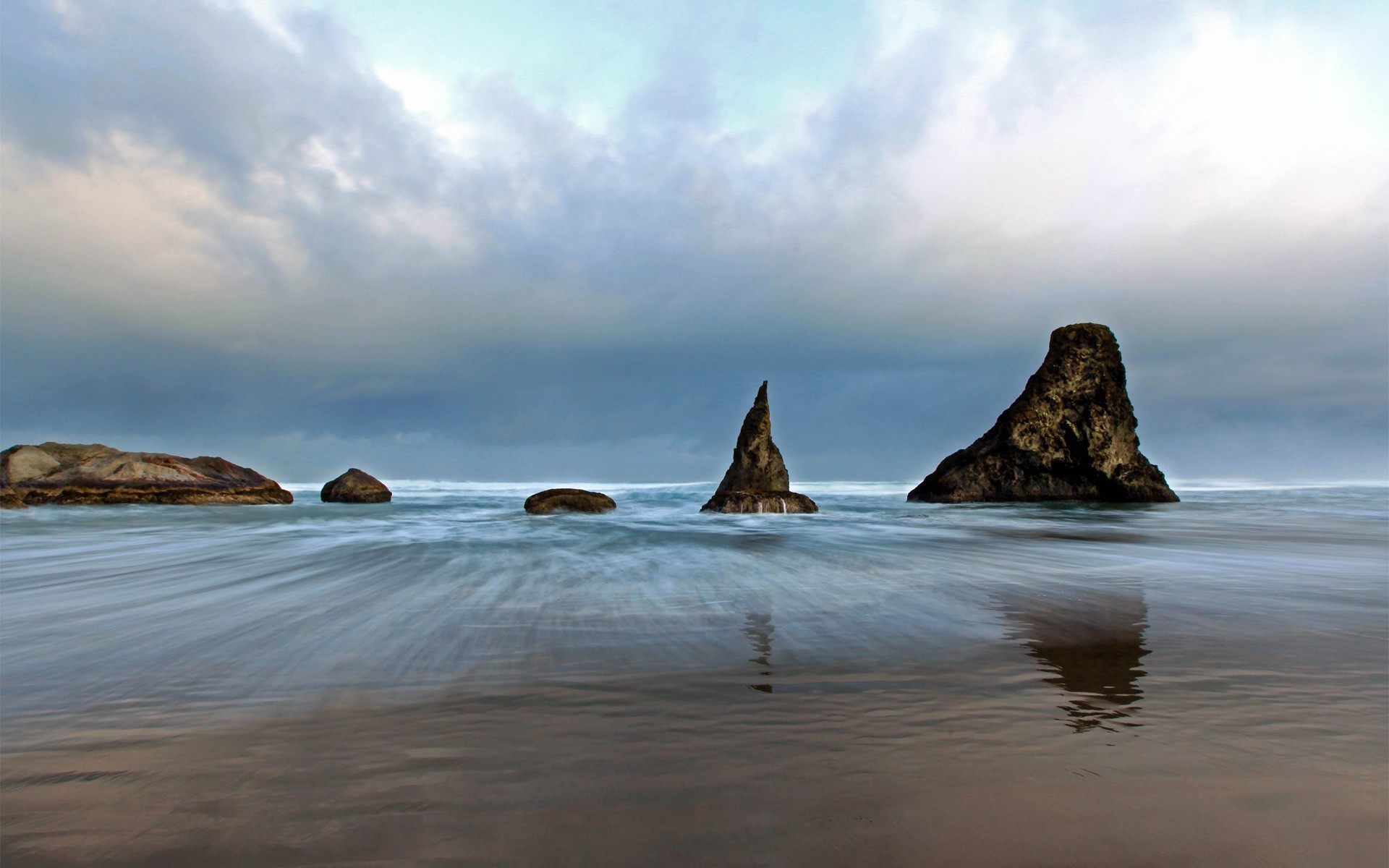Four rocks sticking out of the sea surface