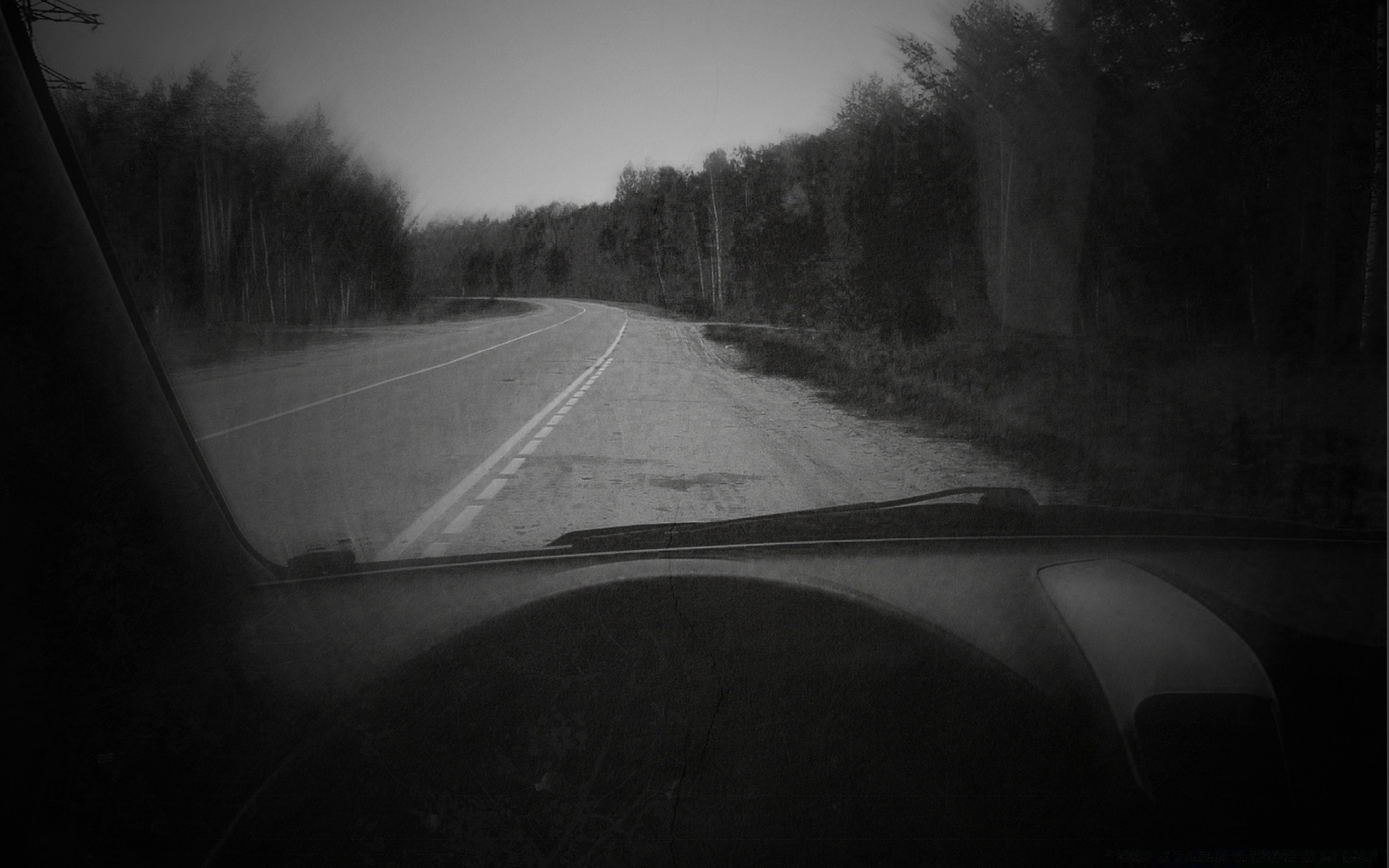 Black and white asphalt road landscape