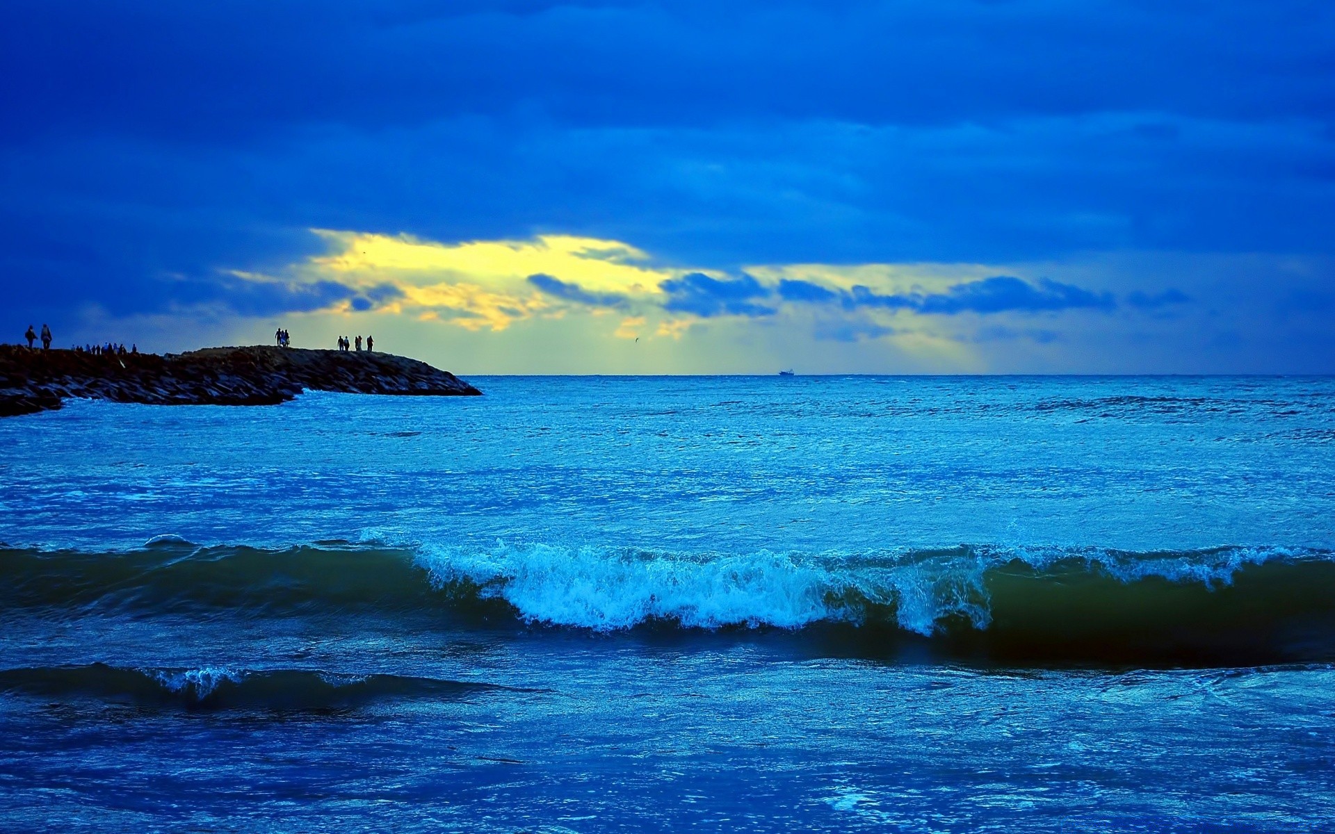 Twilight among the rocks and the sea