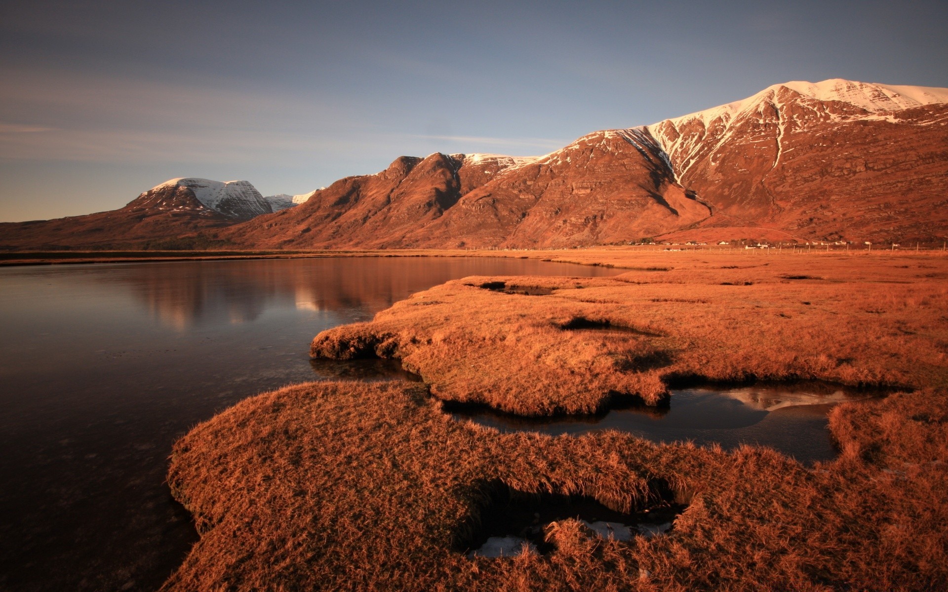 Snow-capped mountains are reflected in the water of the lakeSnow-capped mountains are reflected in the water of the lake