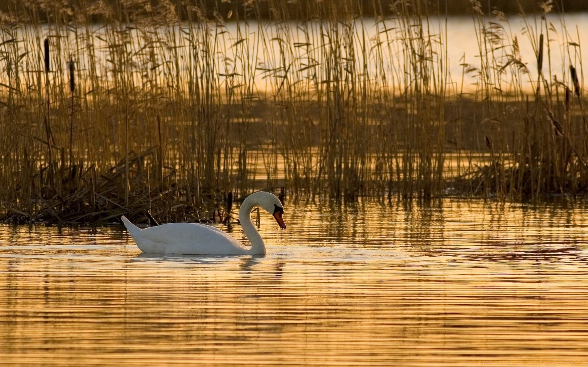 A lonely swan in the rising lake
