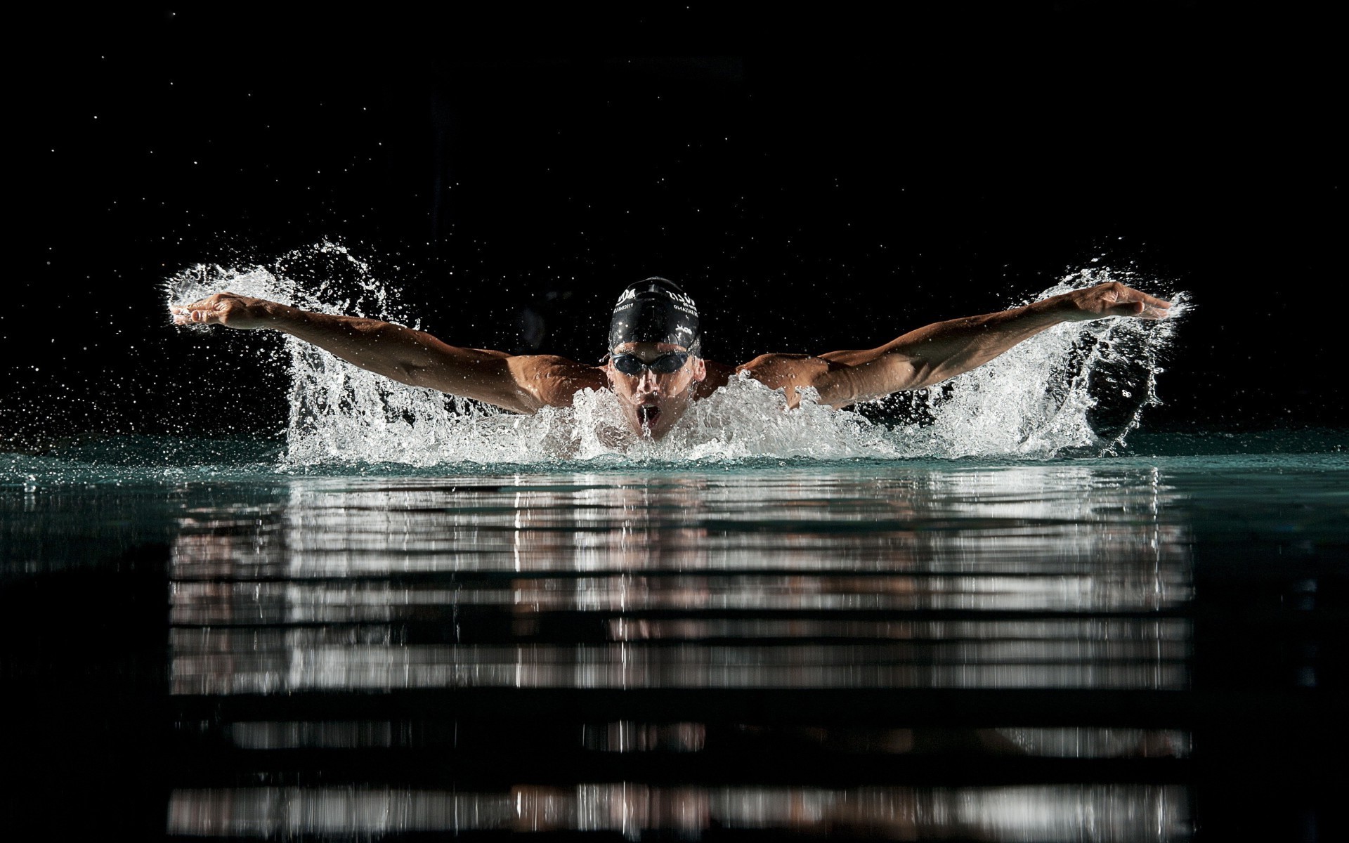 Beautiful girl in a swimsuit. Bright colors in splashes of water