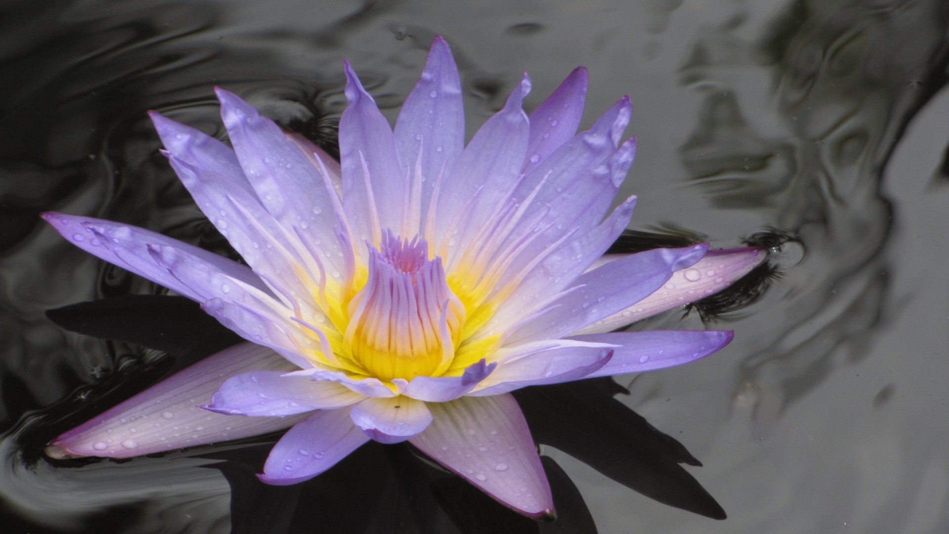 Purple lotus flower on dark water background