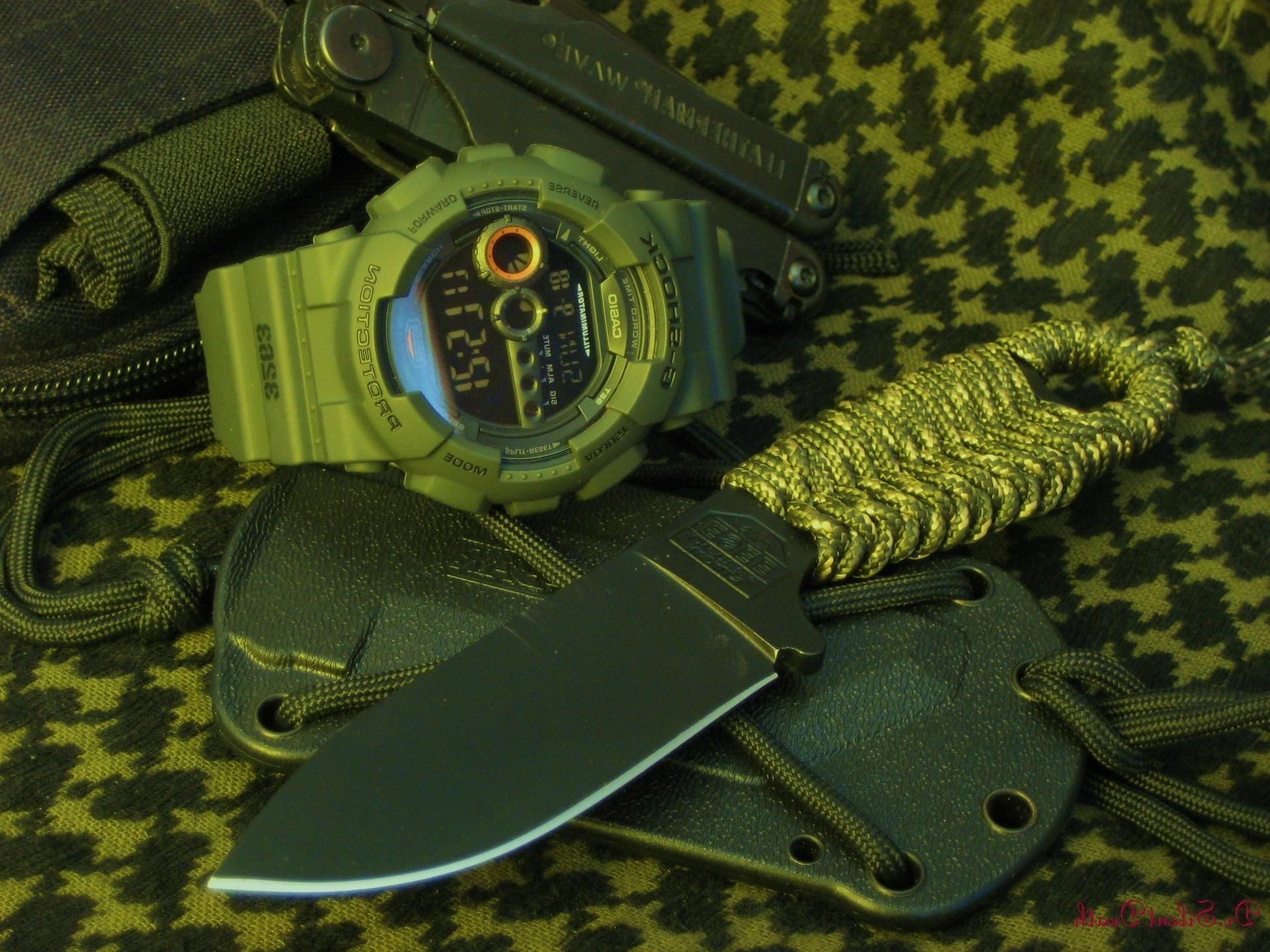 Five men of a musical group in a room with crosses and a statue of a tiger