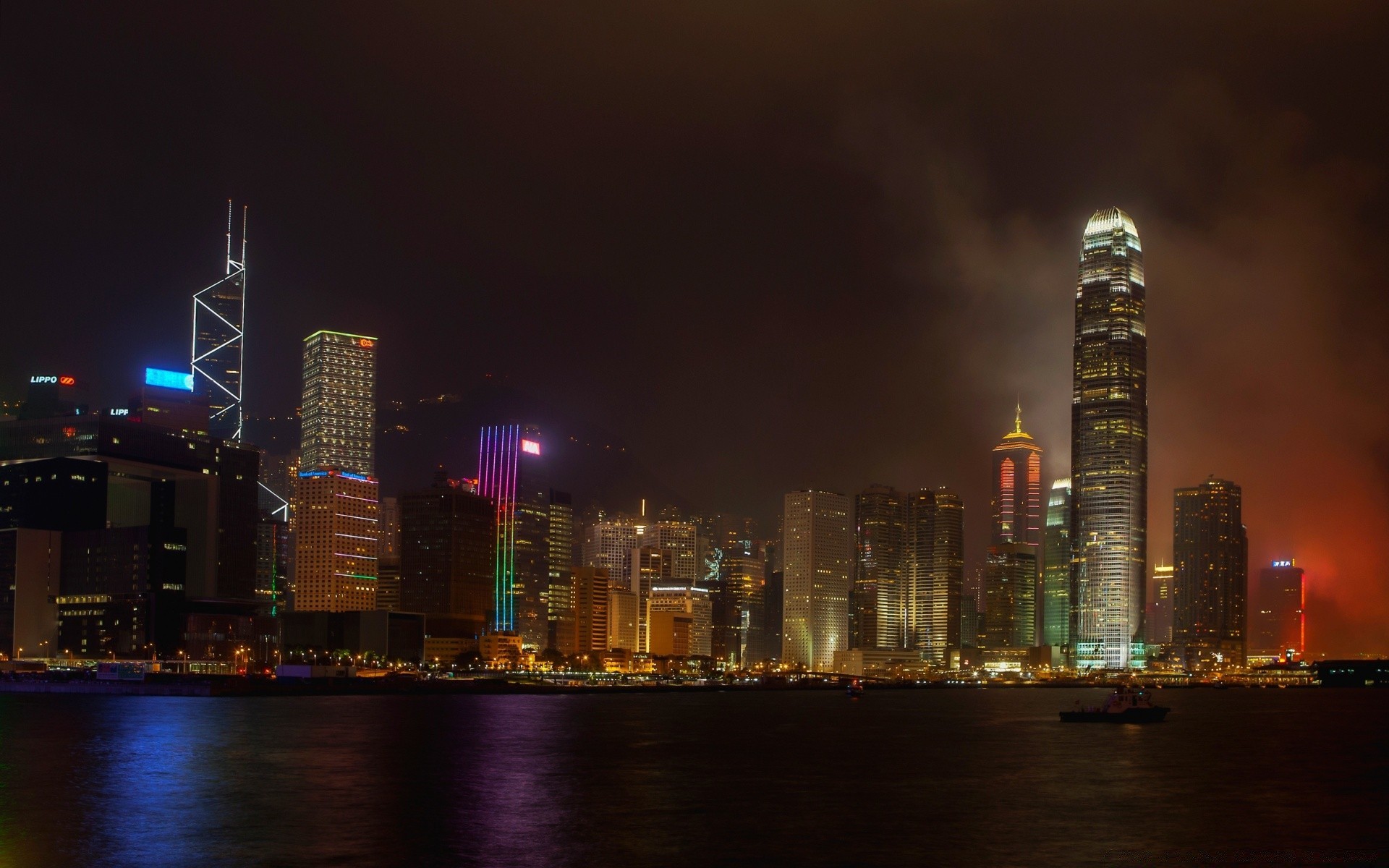 Illuminated tower and skyscrapers in Asia
