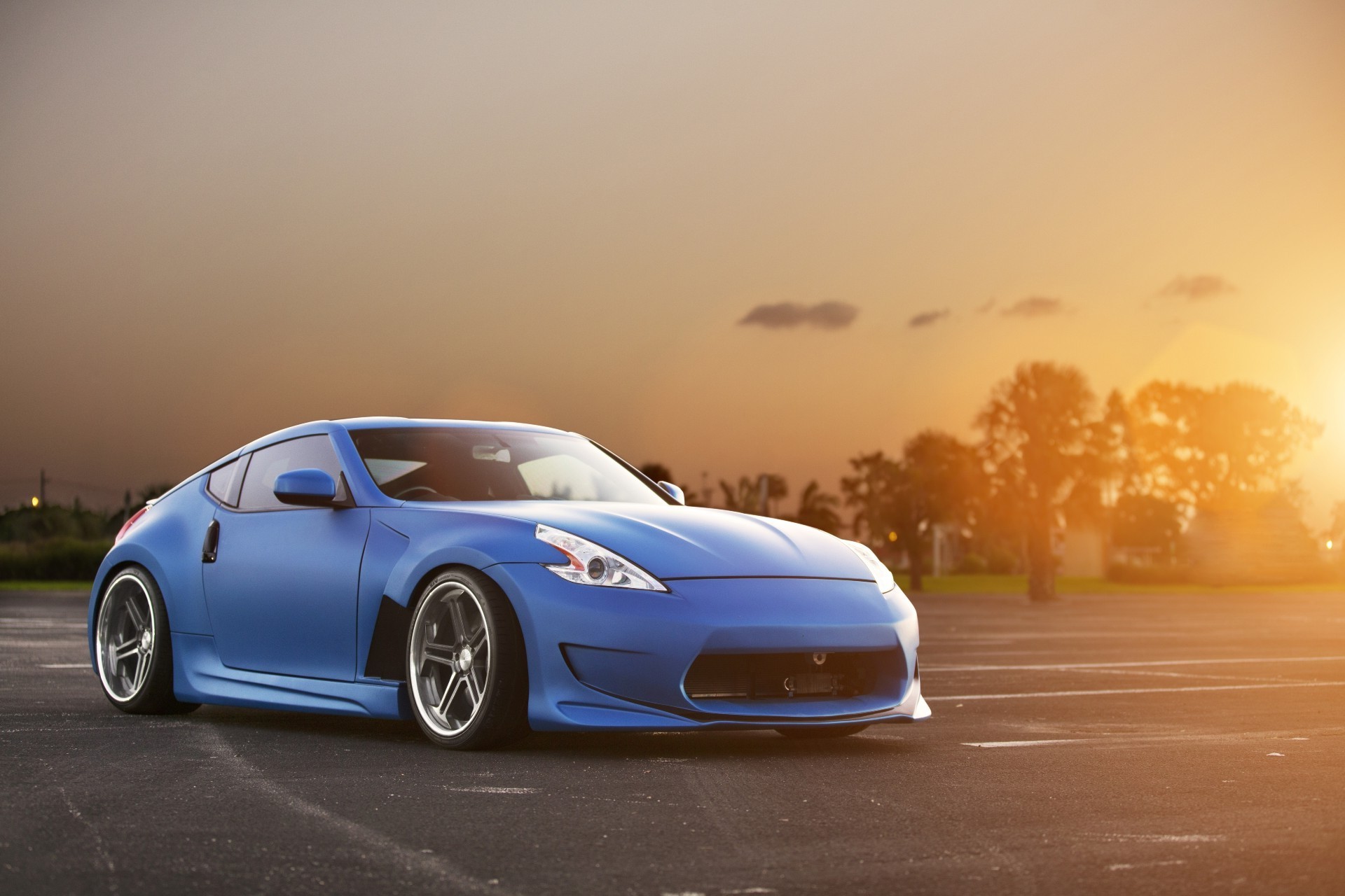 Sports car on sunset background