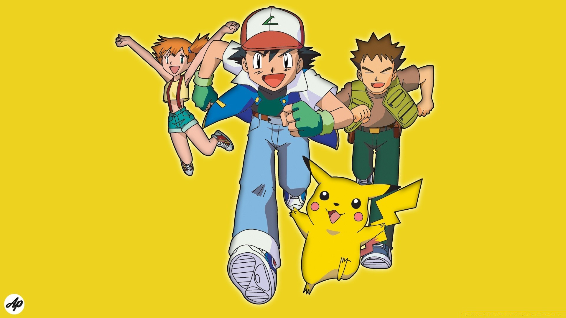 The pikachu team runs on a yellow background