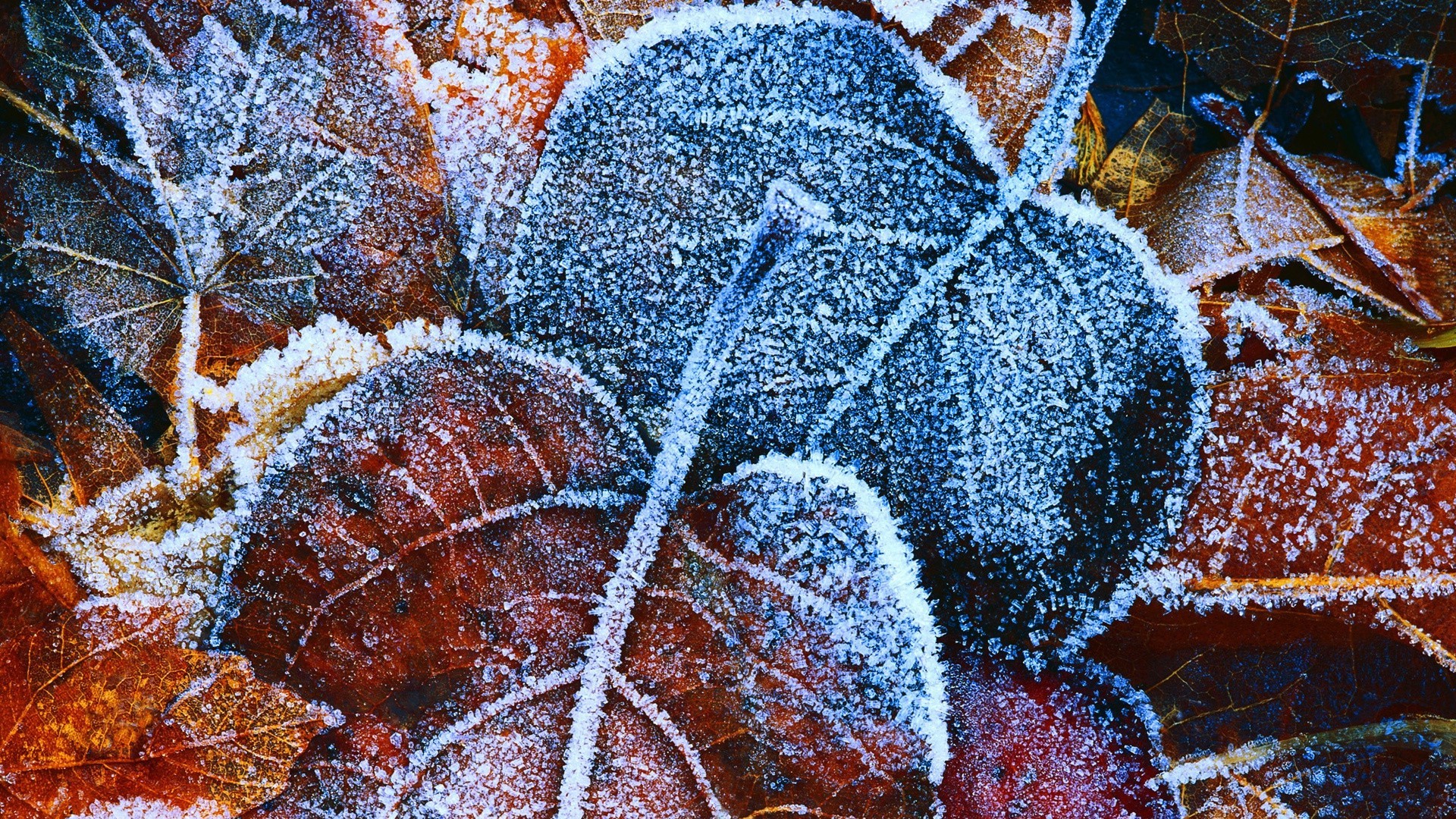 Frozen leaves in the snow