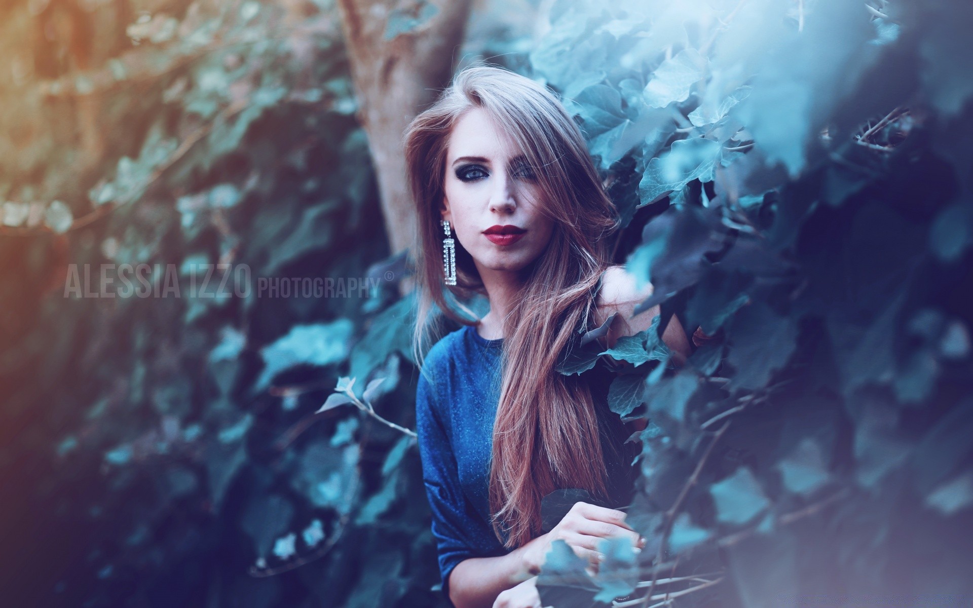 A brunette in a long pink dress is sitting in the grass against the background of an autumn forest