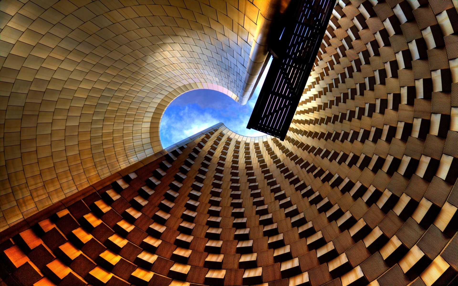 A picturesque reflection of the sky in the windows of a multi-storey building