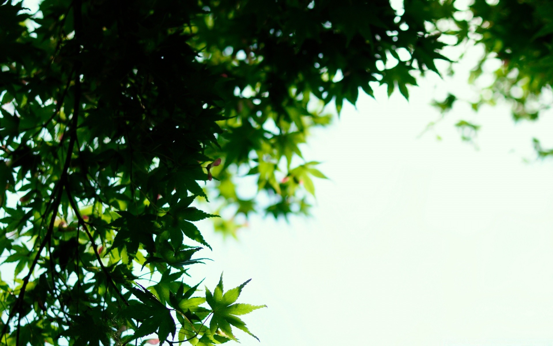 View of the sky through the leaves of trees
