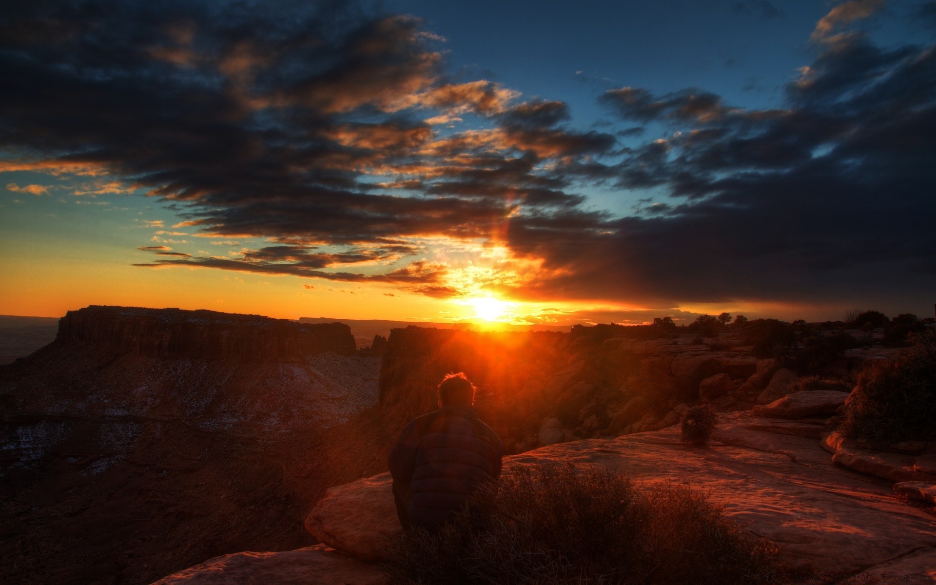 Against the background of the sunset sky, a man stands on a hill and looks at the cityAgainst the background of the sunset sky, a man stands on a hill and looks at the city