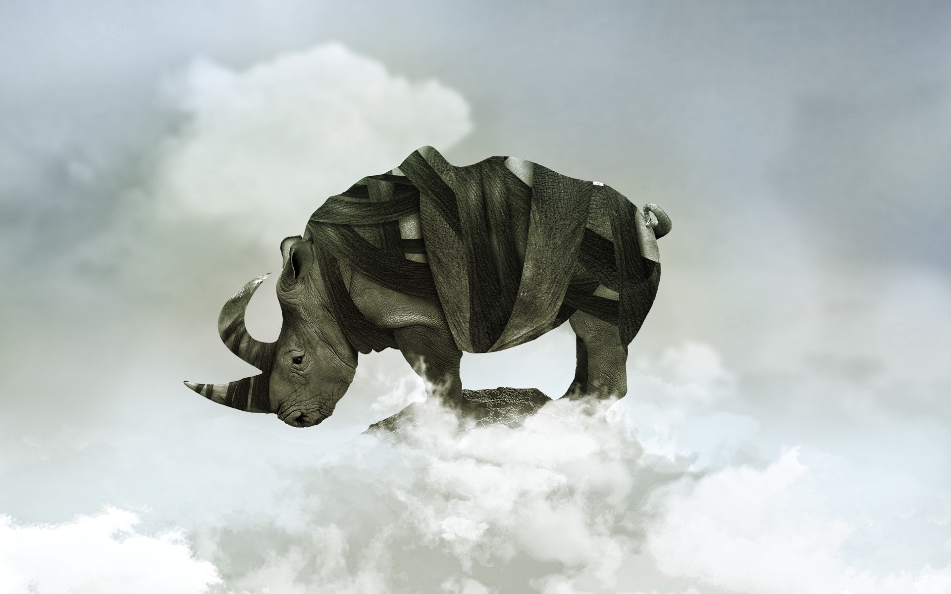 The tortured rhinoceros reached the top of the mountainThe tortured rhinoceros reached the top of the mountain