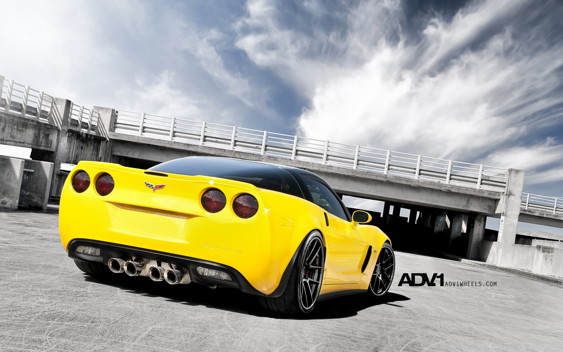 Yellow car at the bridge