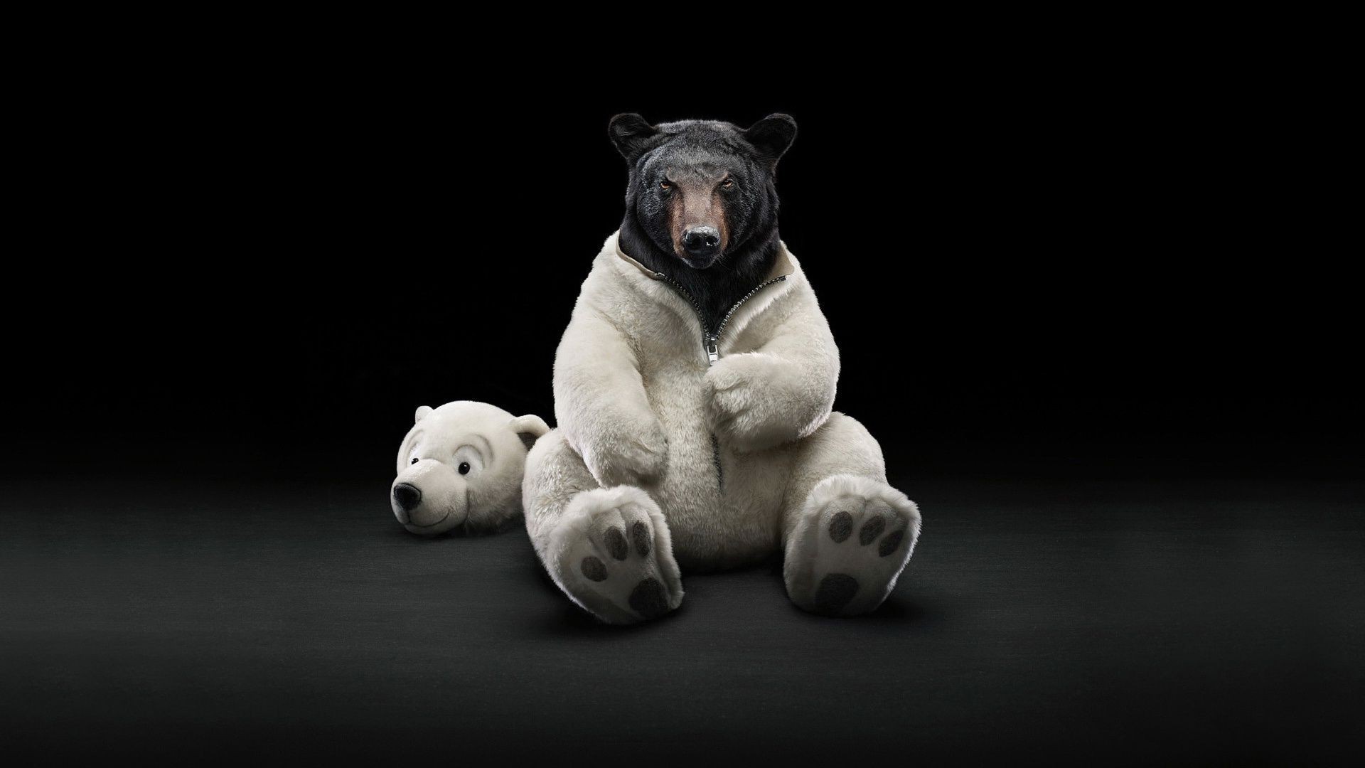 Brown bear takes off white's costume