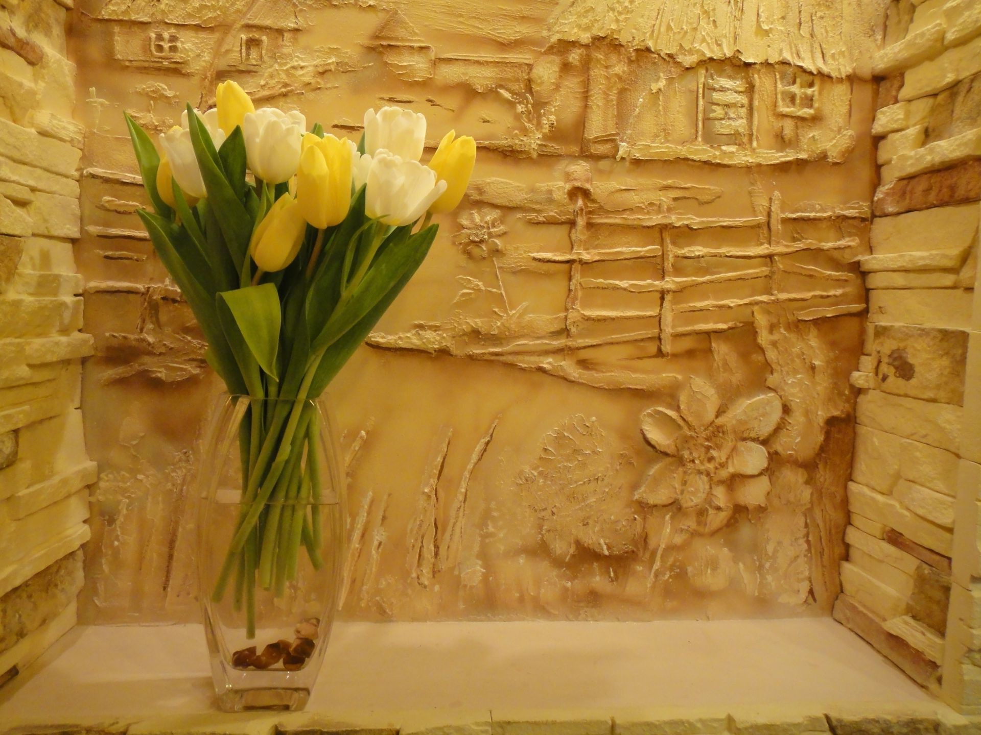 A wooden deer with a bow and a pair of Christmas stars sewn from fabric-pendants