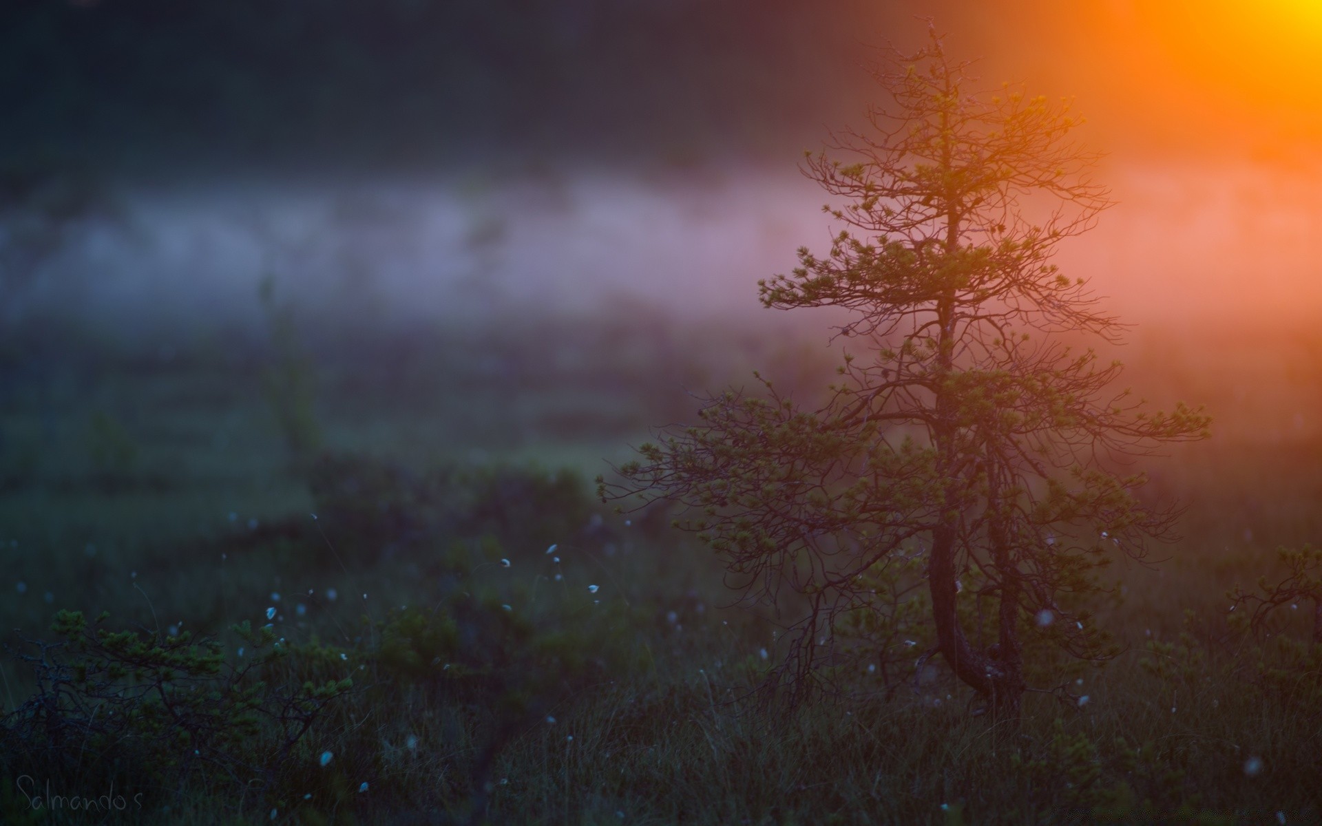 A lonely tree stands in the fog