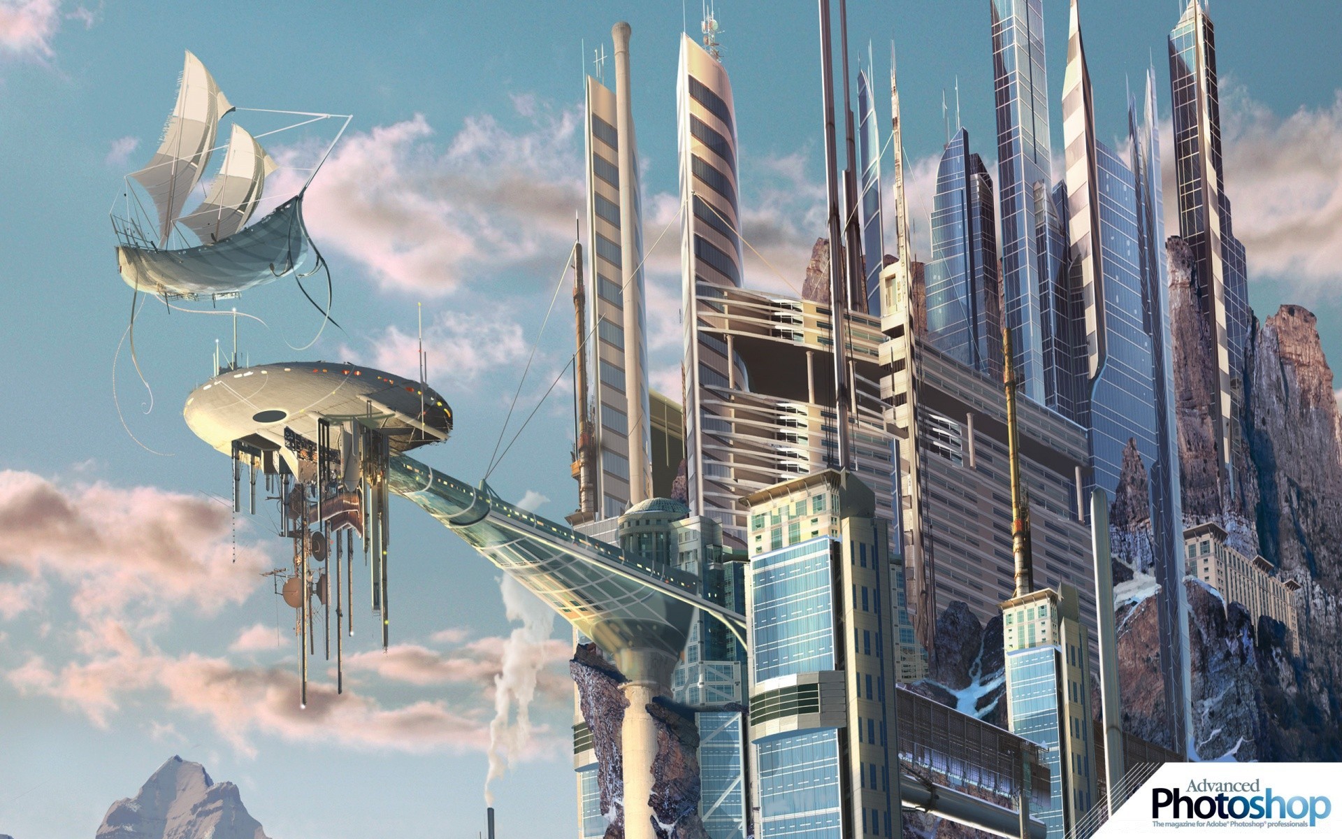 The city of the future and the flying ship