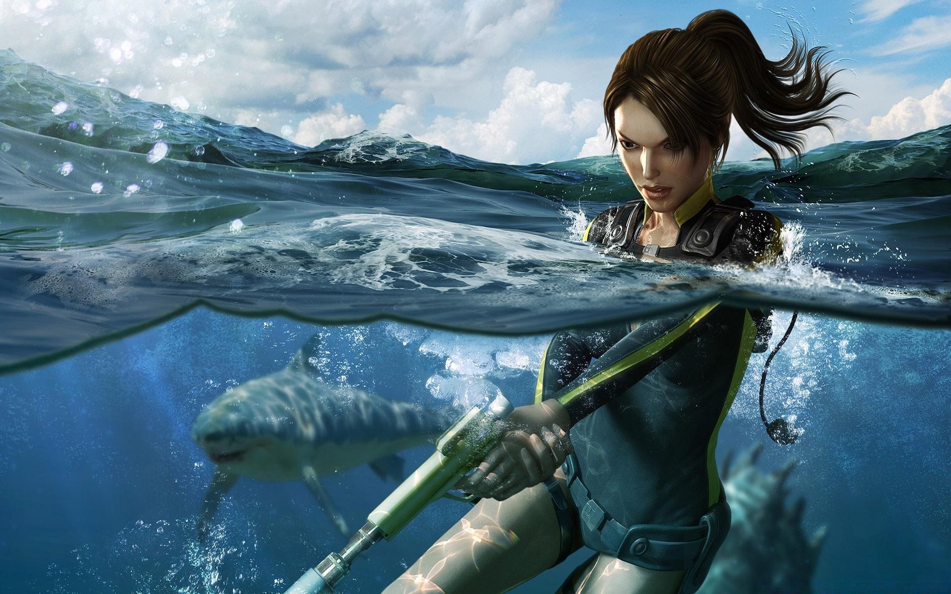 A woman on a spearfishing with a blaster