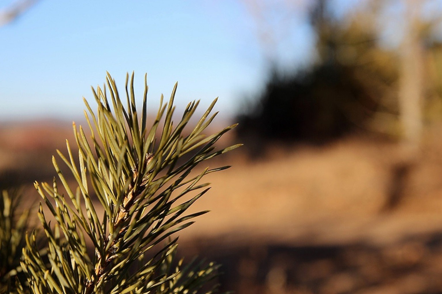 A branch of a Christmas tree in close-up on a blurry background