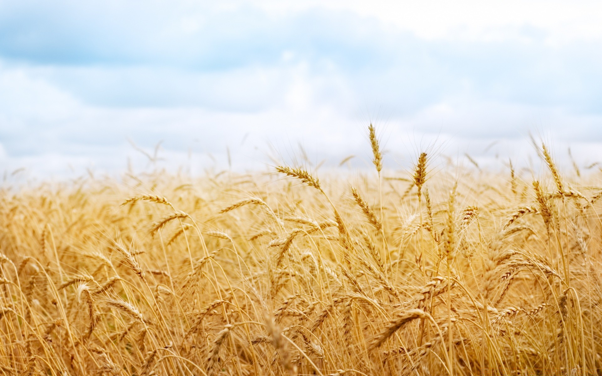 A wicker basket with greenery on the grass. Beautiful rural landscape