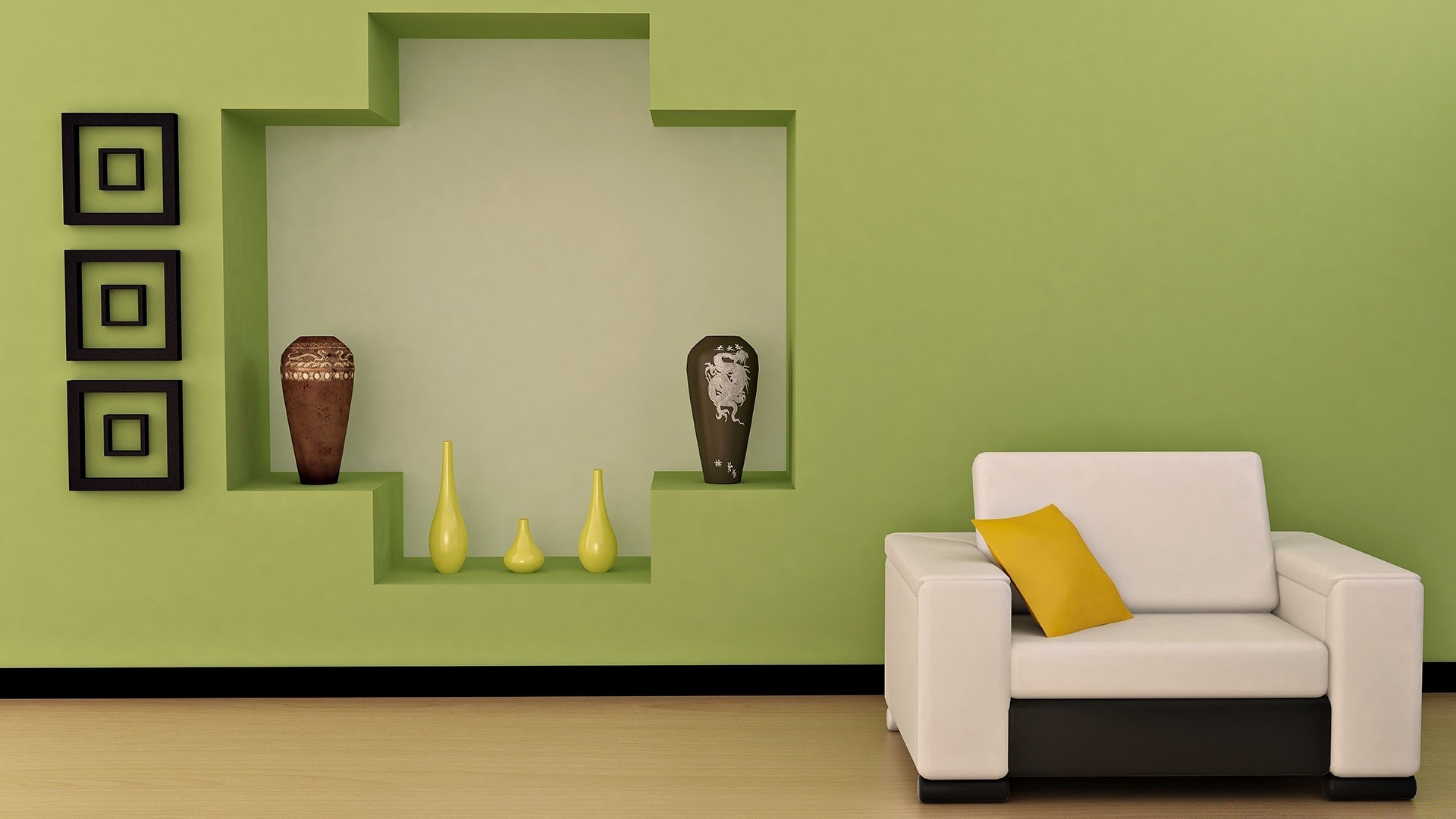 Room divantdere in aorzinestol and sofa white walls white floor beige