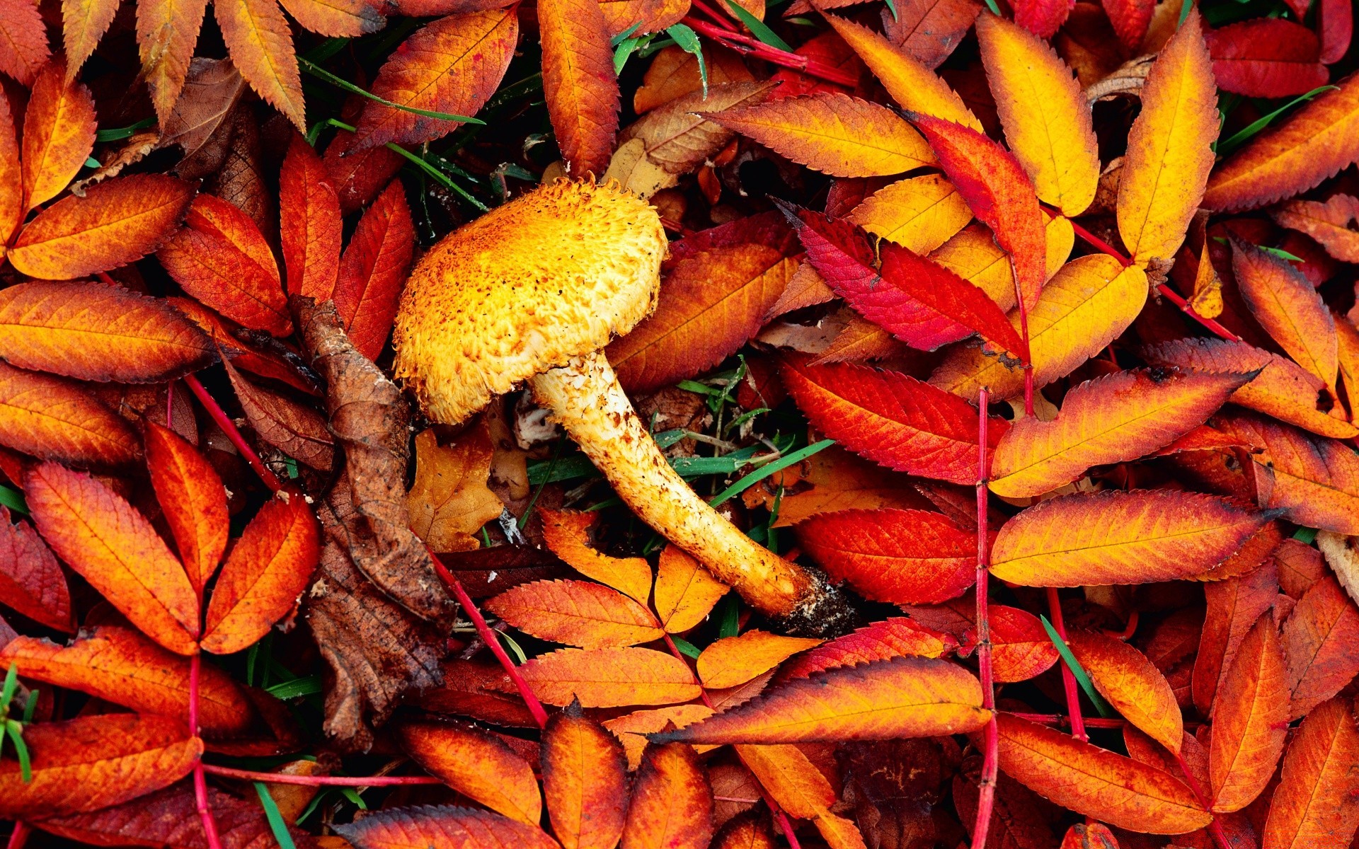 Autumn colors of leaves and mushrooms