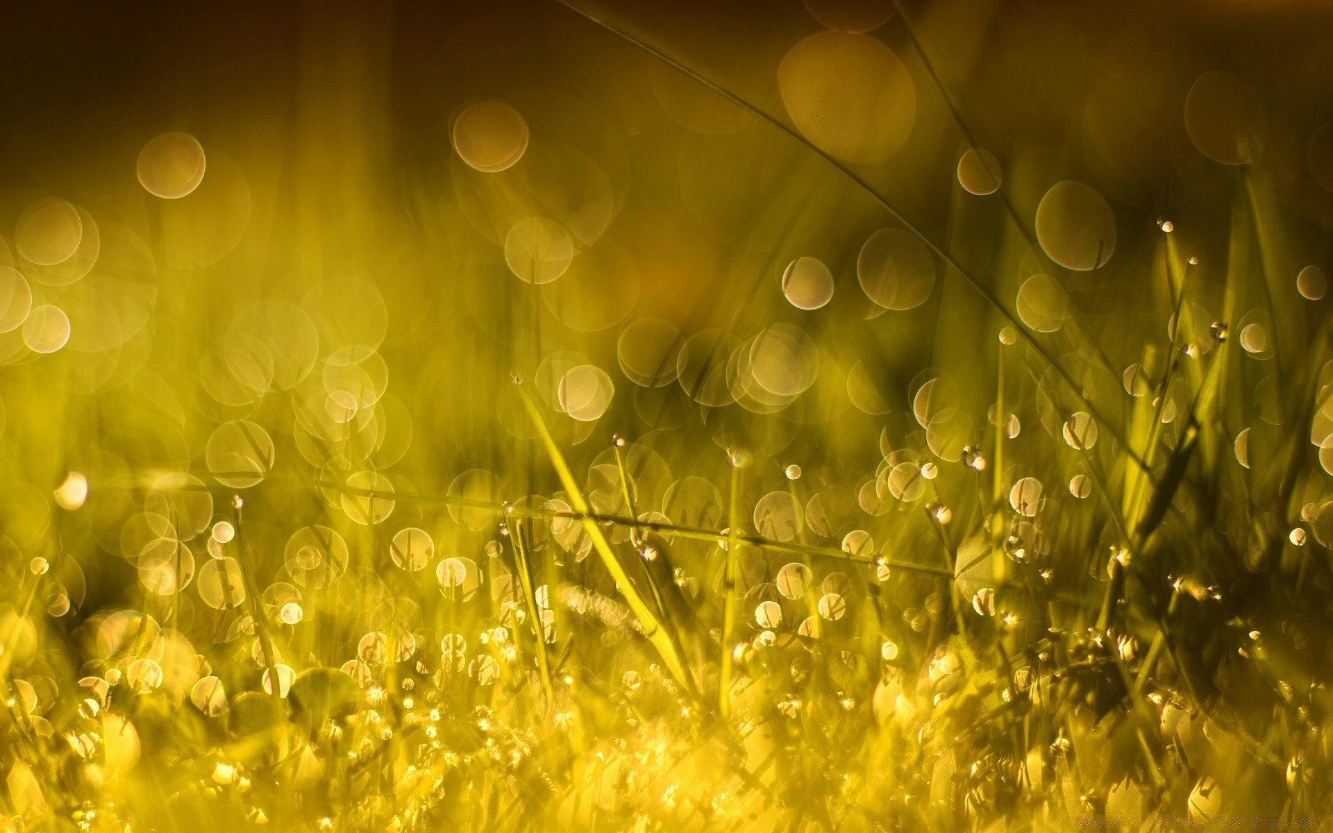 Green glade and dew drops
